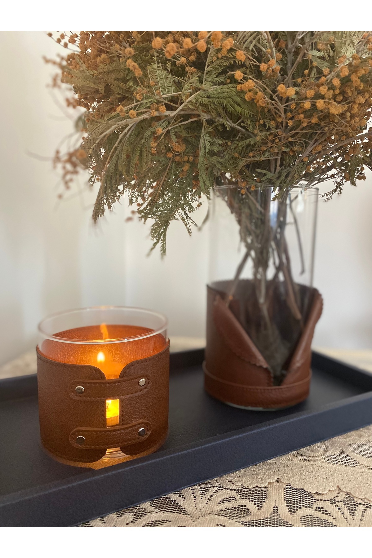 TABA DESİGN STUDİO Deri küçük boy mumluk