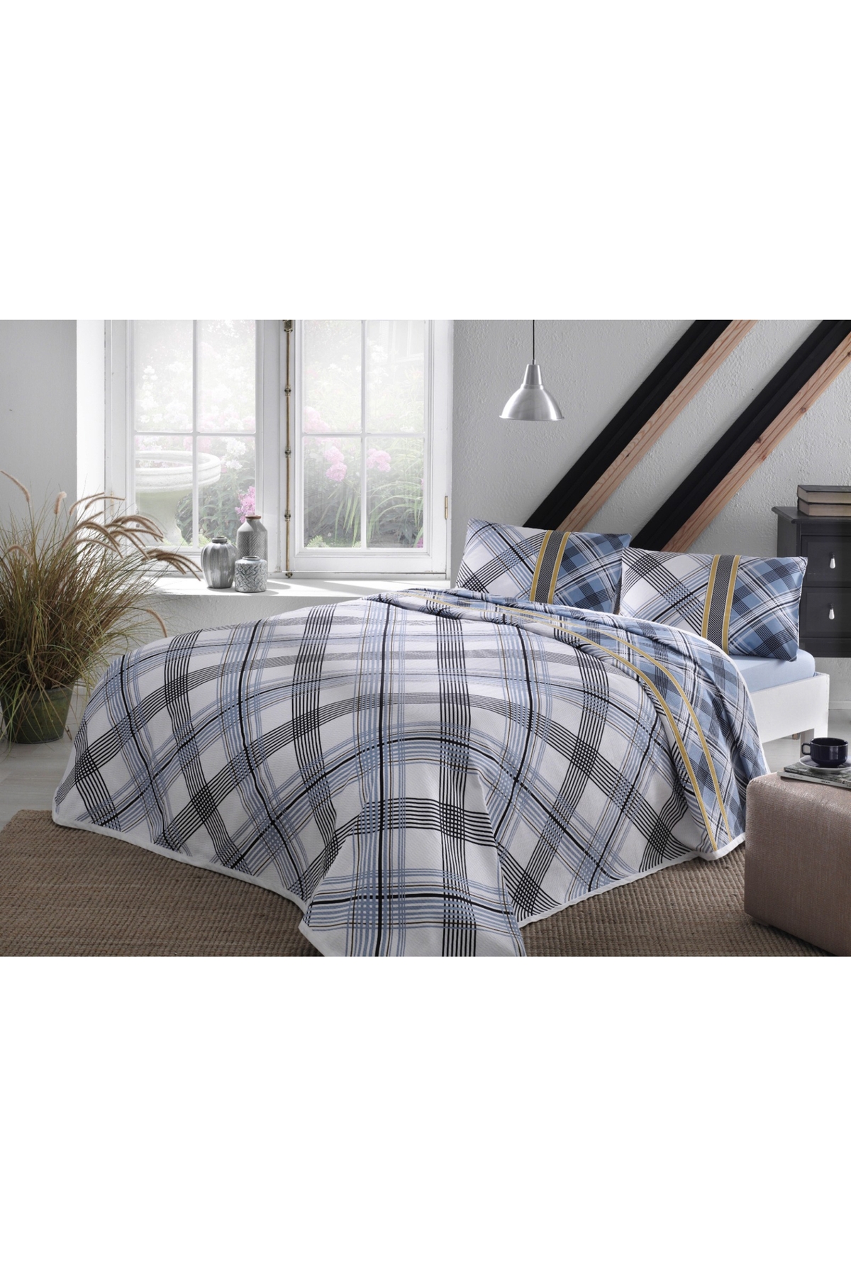 Taç Floyd Ranforce Çift Kişilik Pike Takımı Mavi Özellikleri