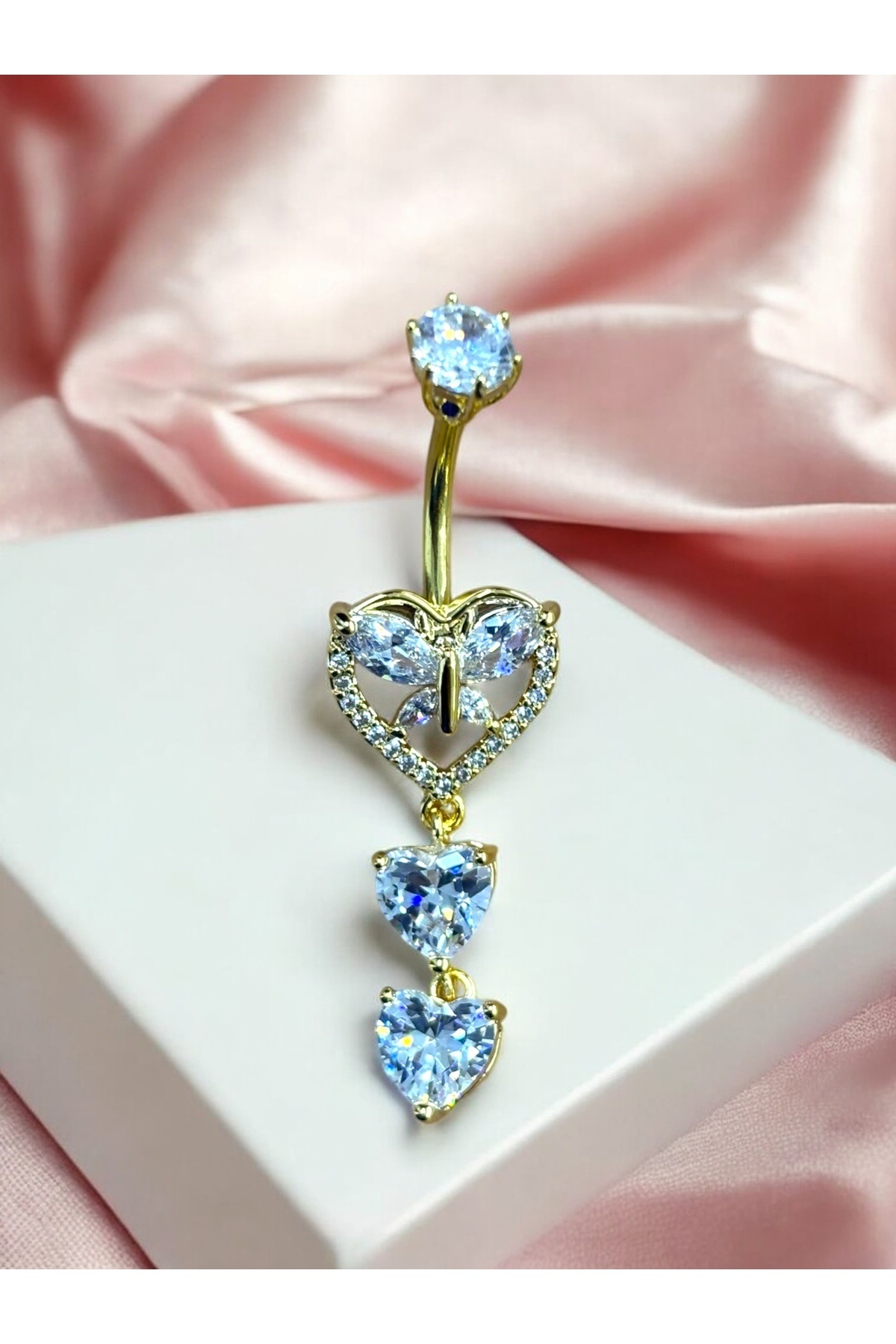 Takayrum Çelik Kalp ve Kelebek detaylı Göbek piercing