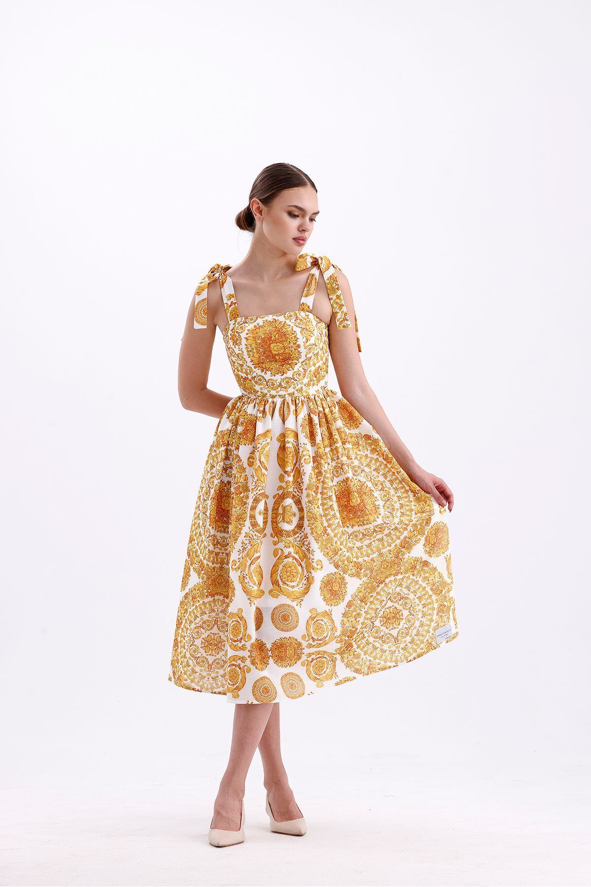 Tangül&Ali'S Moda Evi Sarı Keten Midi Elbise Özellikleri