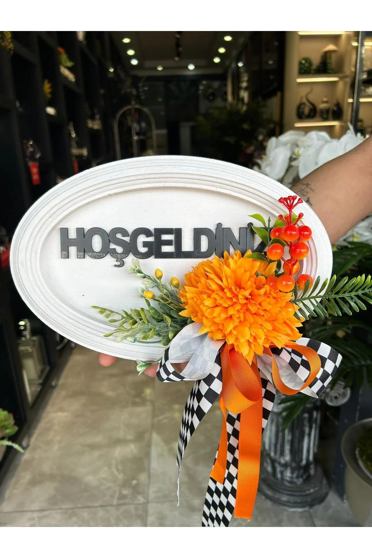 TASARIMHMODA Ahşap Yapay Çiçekli Kapı Duvar Süsü No:5
