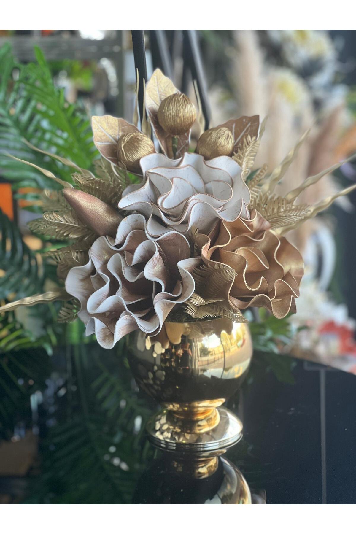 TASARIMHMODA Yapay Çiçekli Ayaklı Mercan Vazo