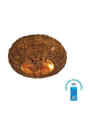Magnotto Aydınlatmalı Tavan Vantilatörü Pervaneli Avize Lamba Işıklı Tavan Pervanesi Ahşap Hasır Vantilatör.