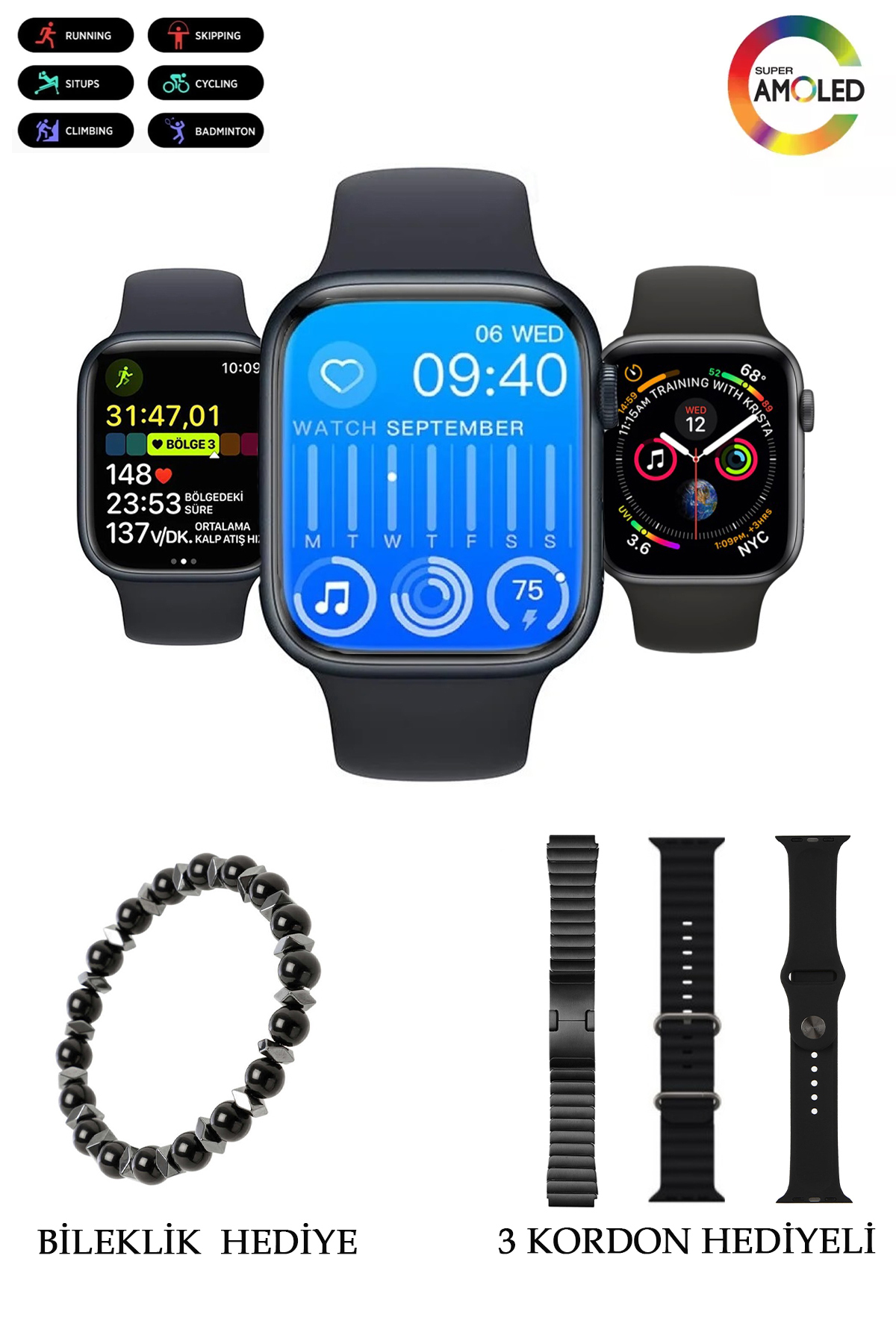 TECHNOMEN AKILLI SAAT SW-9 AMOLED EKRAN Özellikleri
