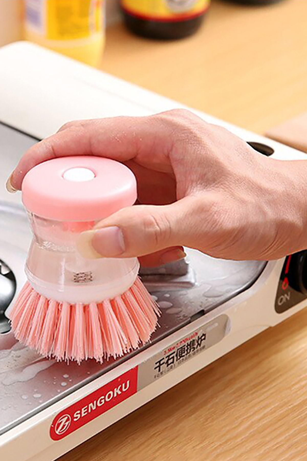 TechnoStation Bulaşık Yıkama Fırçası Deterjan Hazneli Çok Amaçlı Ocak Tencere Tava Mutfak Banyo Temizleme Fırçası