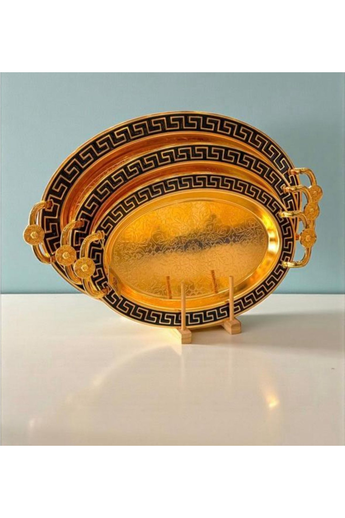 teknonisa 3lü çelik sofra tepsi gold renk