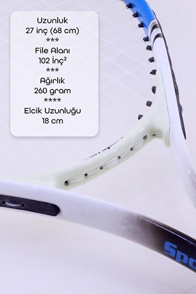Telvesse Deluxe 27 İnç Tenis Raketi Çantalı Yetişkin Tennis Racket L2 Grip 68 cm Mavi 527