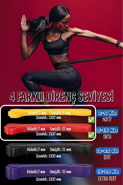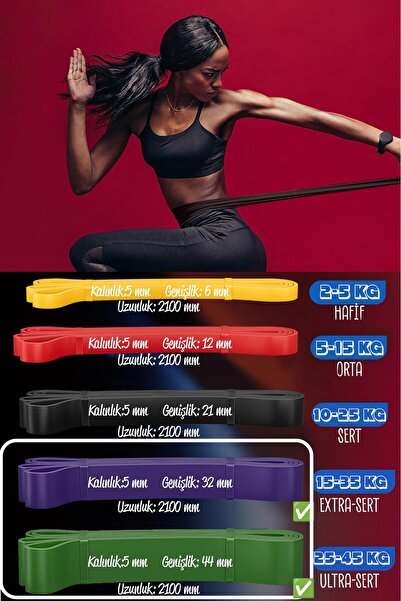 Telvesse 9lu TERA SET 5+15+25+35 KG + 5Li Pilates Direnç Bandı Barfiks Lastiği Loop Band Mavi Ton