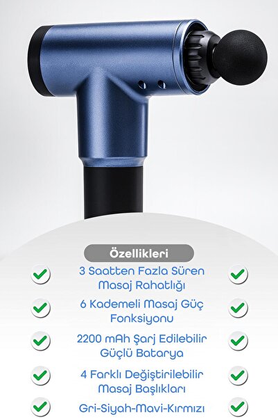 Telvesse 6 Kademeli Masaj Tabancası Sporcu Masaj Aleti 4 Başlıklı Titreşimli Kas Masaj Cihazı Mavi H320