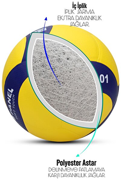 Telvesse SEMİ-PRO Voleybol Topu Lamineli Beton Zemin SoftTouch İç-Dış Mekana Uygun 8 Panel Sarı-Mavi V1000