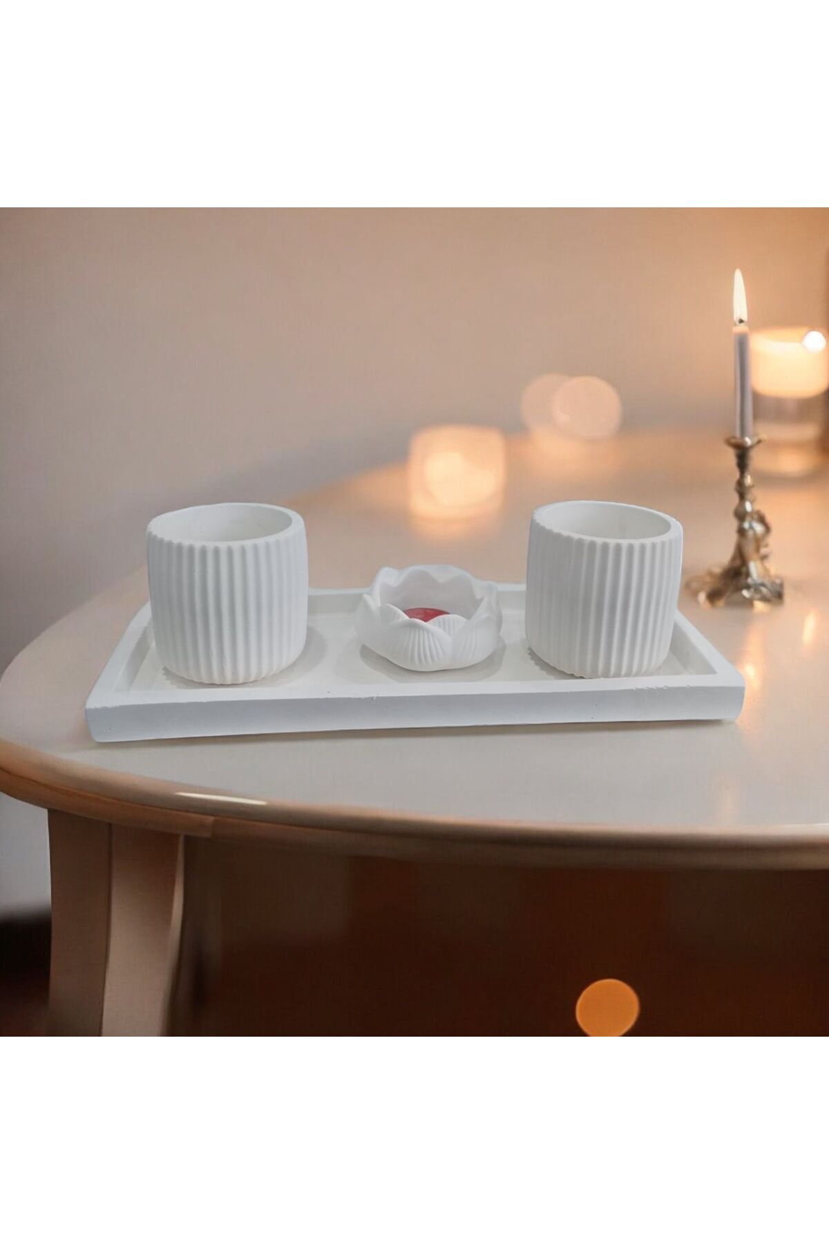The Motellas 4'lü Dekoratif Biblo Vazo Mumluk Tabak Set