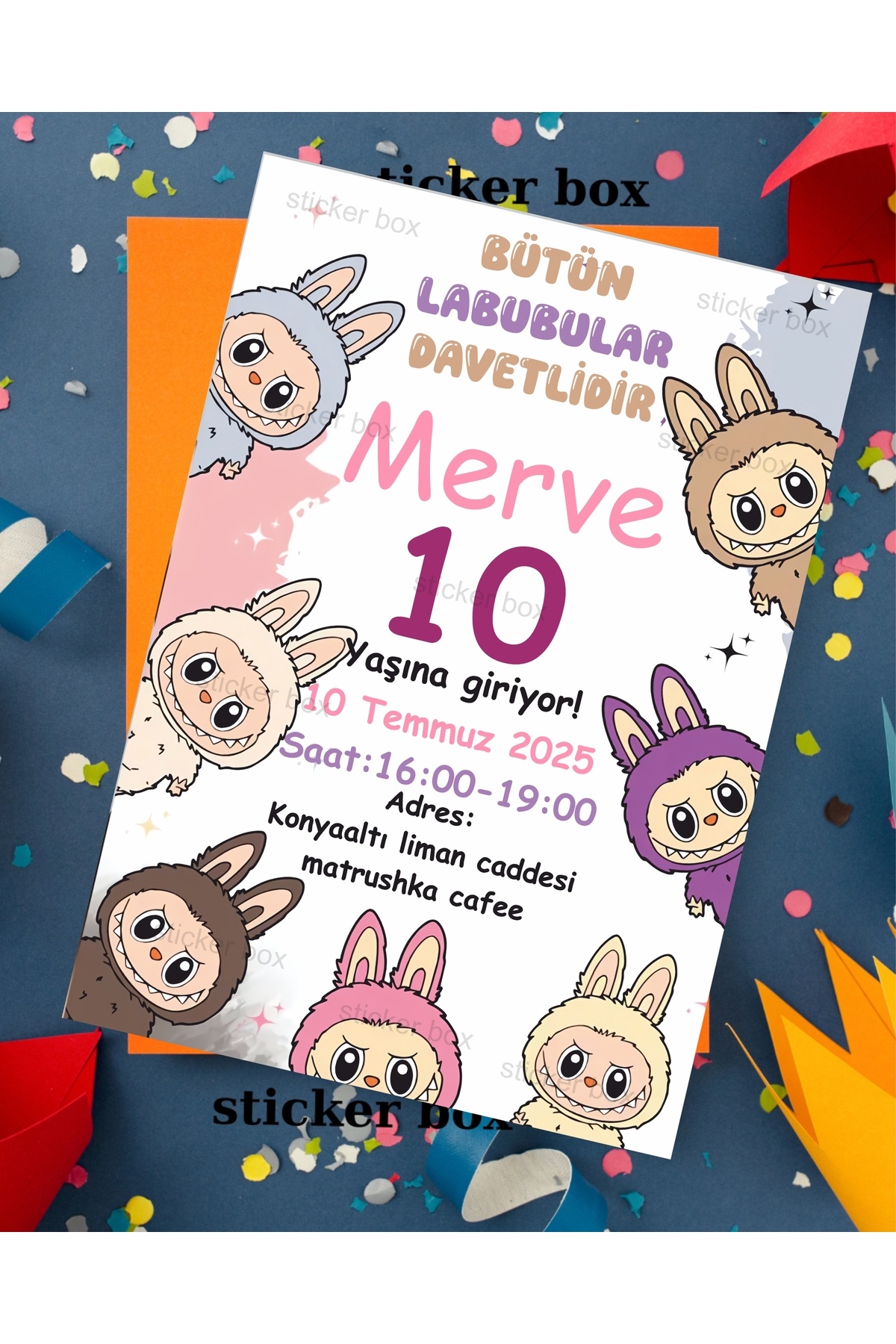 Think And Print 40 ADET LABUBU TEMA Davetiye Çocuk Parti Malzemesi Doğum Günü Süsü Sünnet Davetiye Kart Kişiye Özel Özellikleri