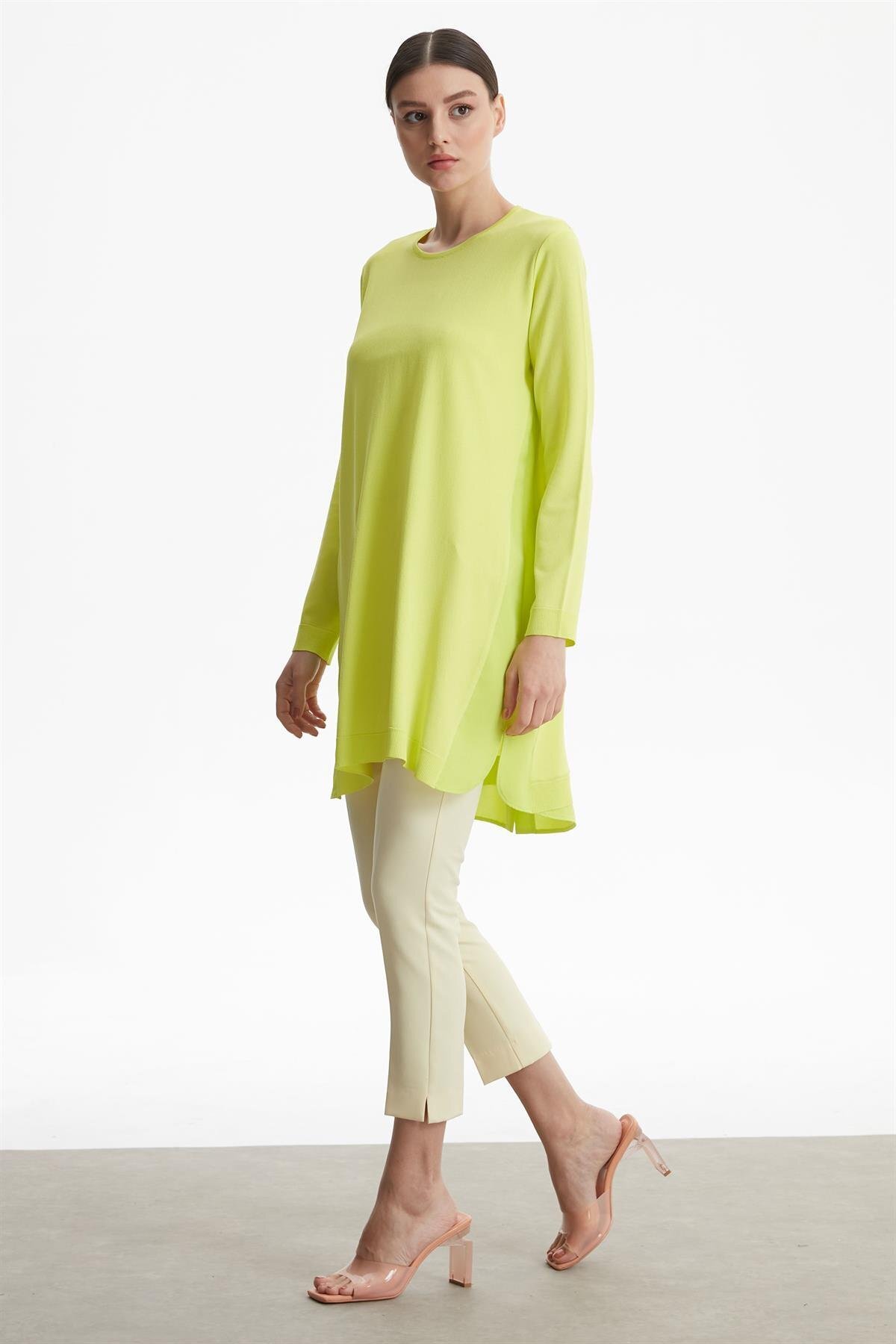 Tığ Triko Kumaş Garnili Rayon Basic Triko Tunik Lıme