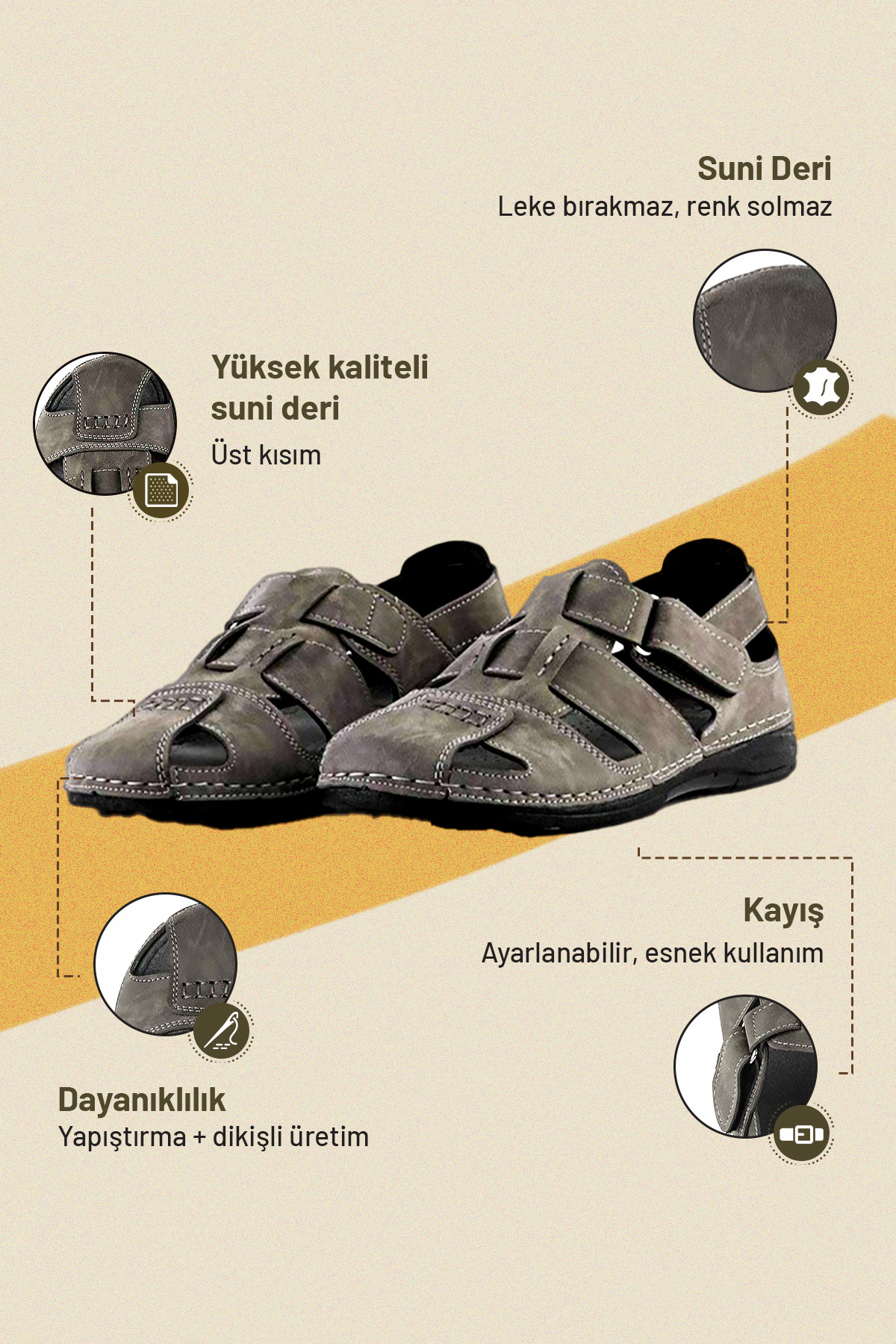 Tigerline Erkek Sandalet - Gri Nubuk - Konfor Destekli Yapı Şık Tasarım Yumuşak Taban Özellikleri