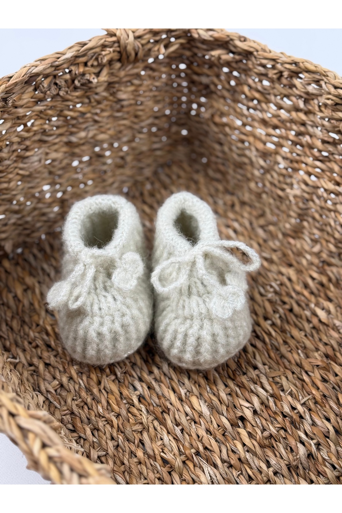 Tiny Simli örme bebek patiği / inci beyazı Özellikleri