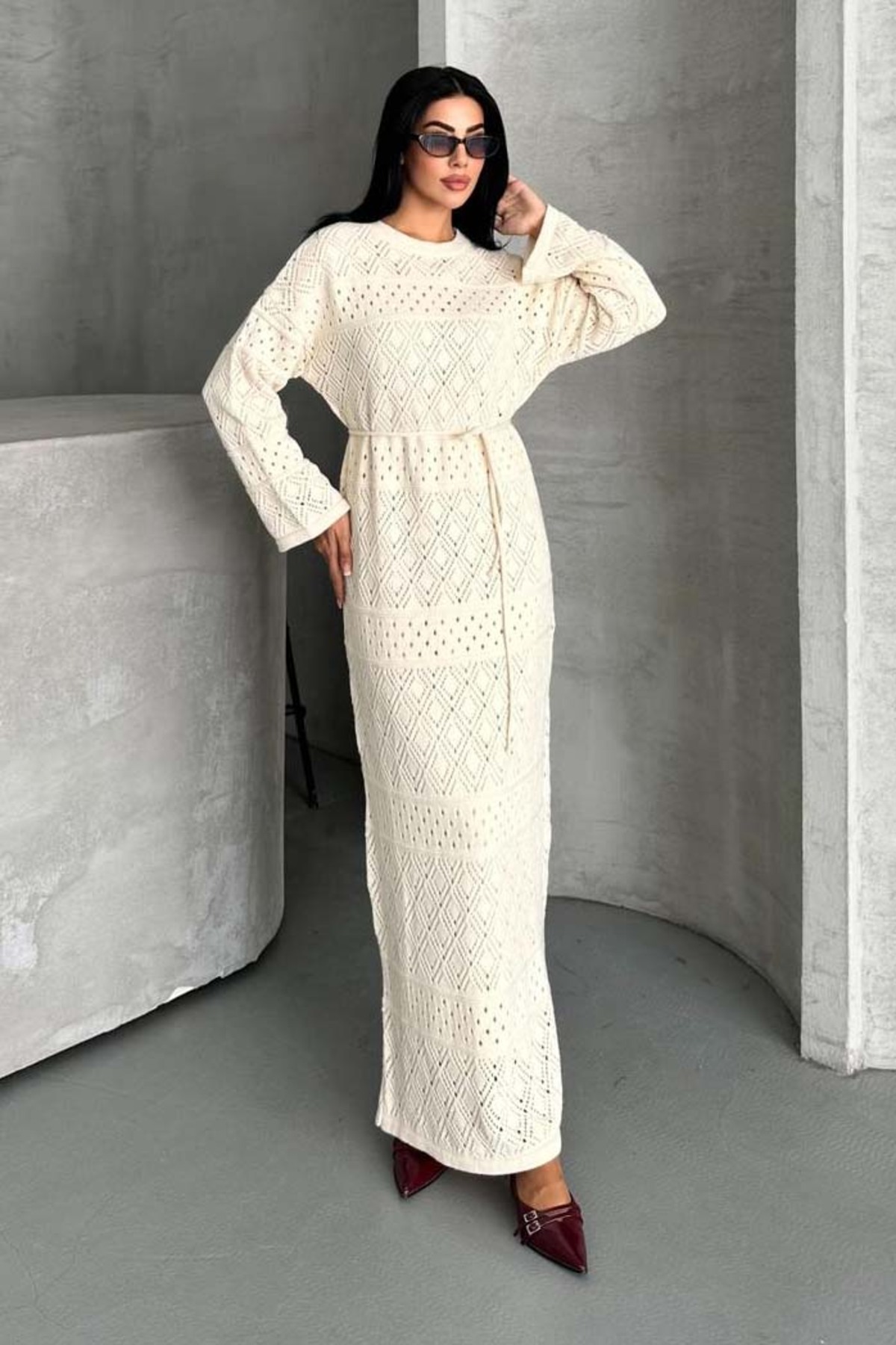 TOFİSA Baklava Desen Astarlı Triko Elbise Ekru - 27712 Özellikleri