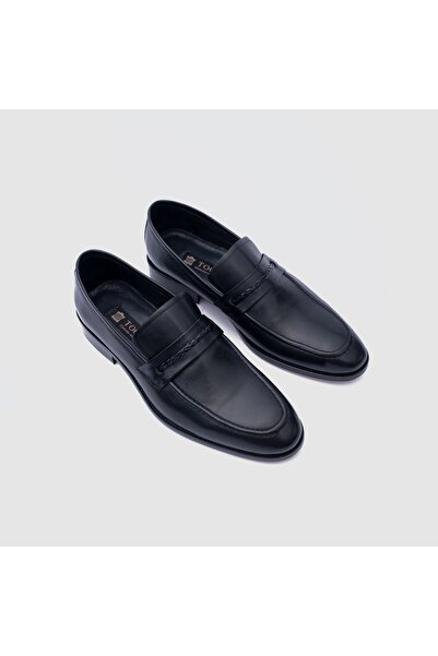 Togo Siyah Açma Hakiki Deri Erkek Klasik Loafer Ayakkabı [052063] - Toka Detaylı