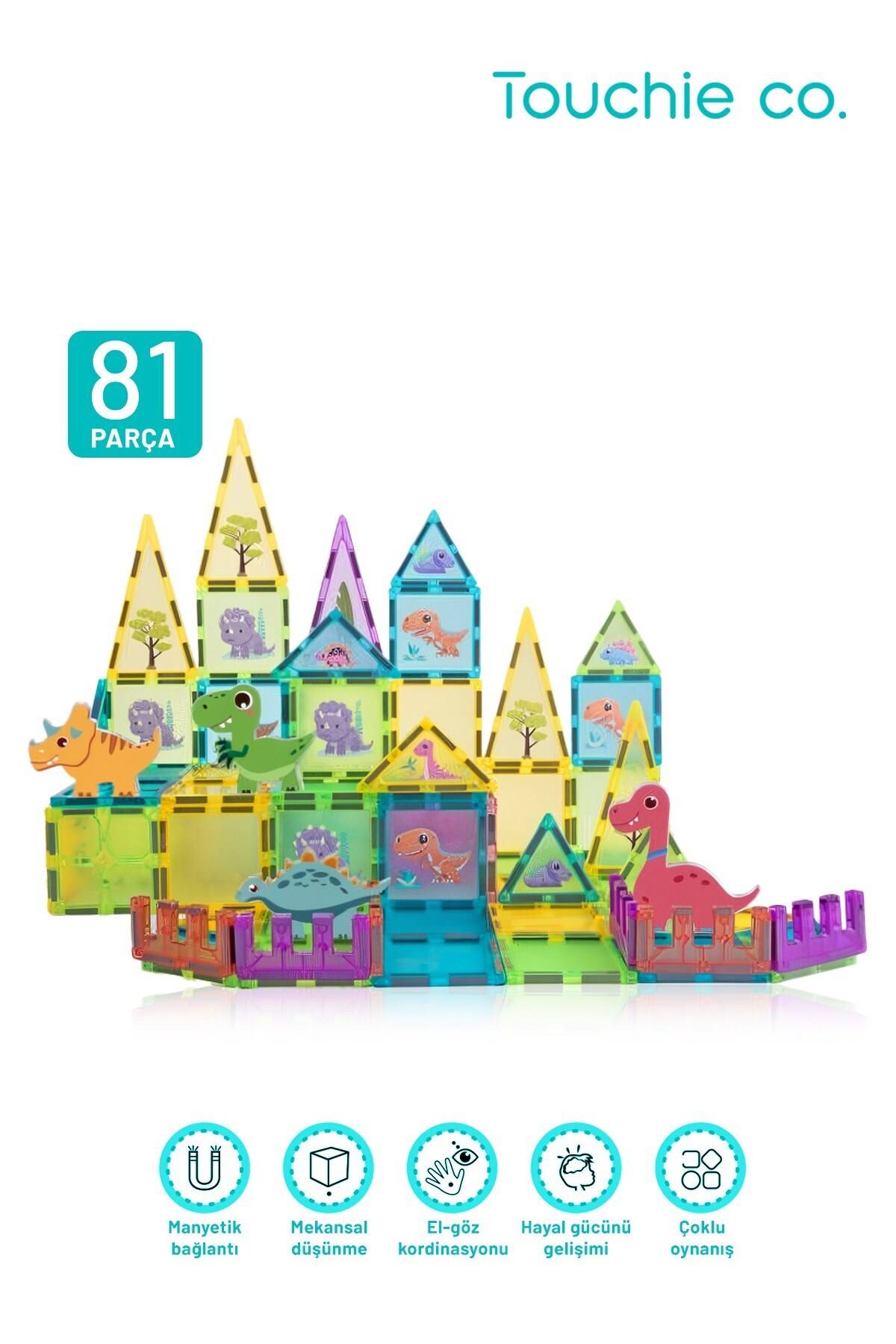 Touchie Co Dinozor Temalı mıknatıslı manyetik Yapı Bloğu Seti 81 Parça Özellikleri