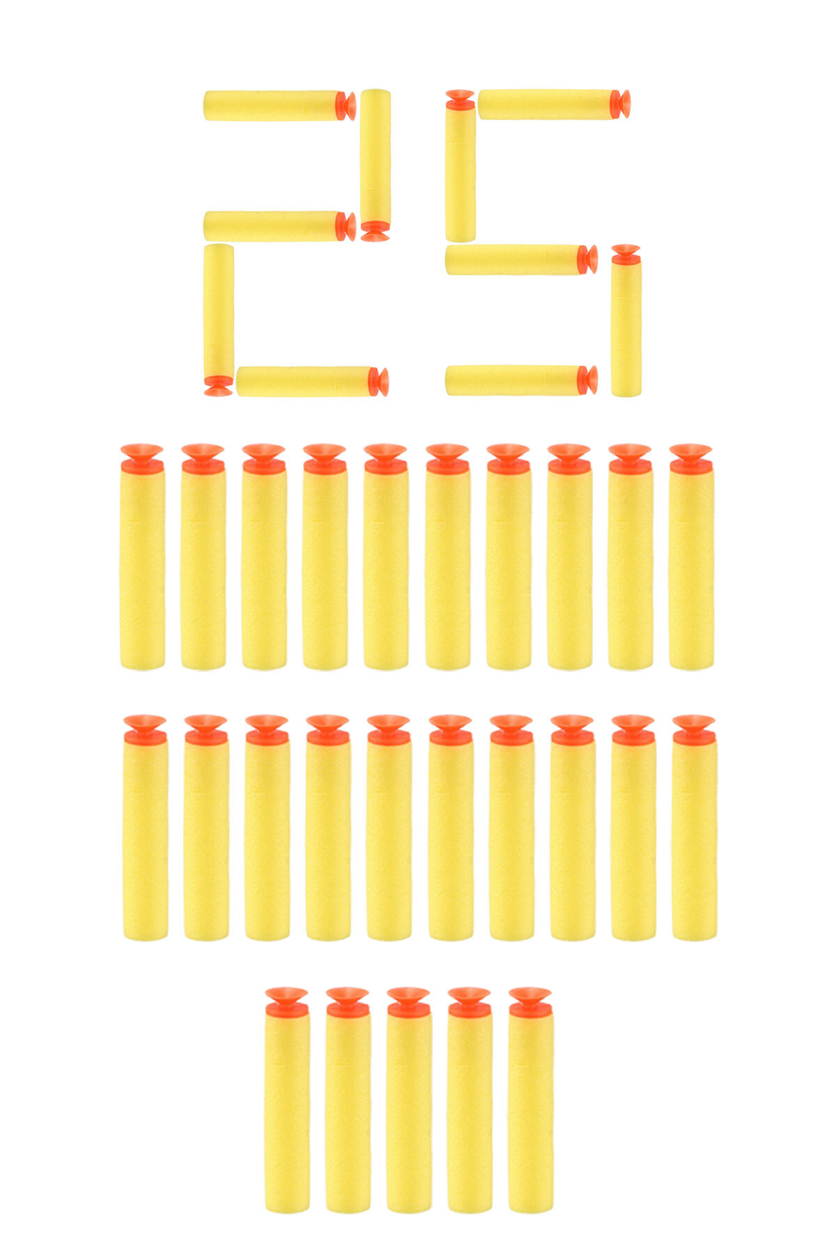 Toyaş 25 Adet Sarı Vantuzlu Yumuşak Sünger Mermi Yedek Mermi Acıtmayan Soft Mermi