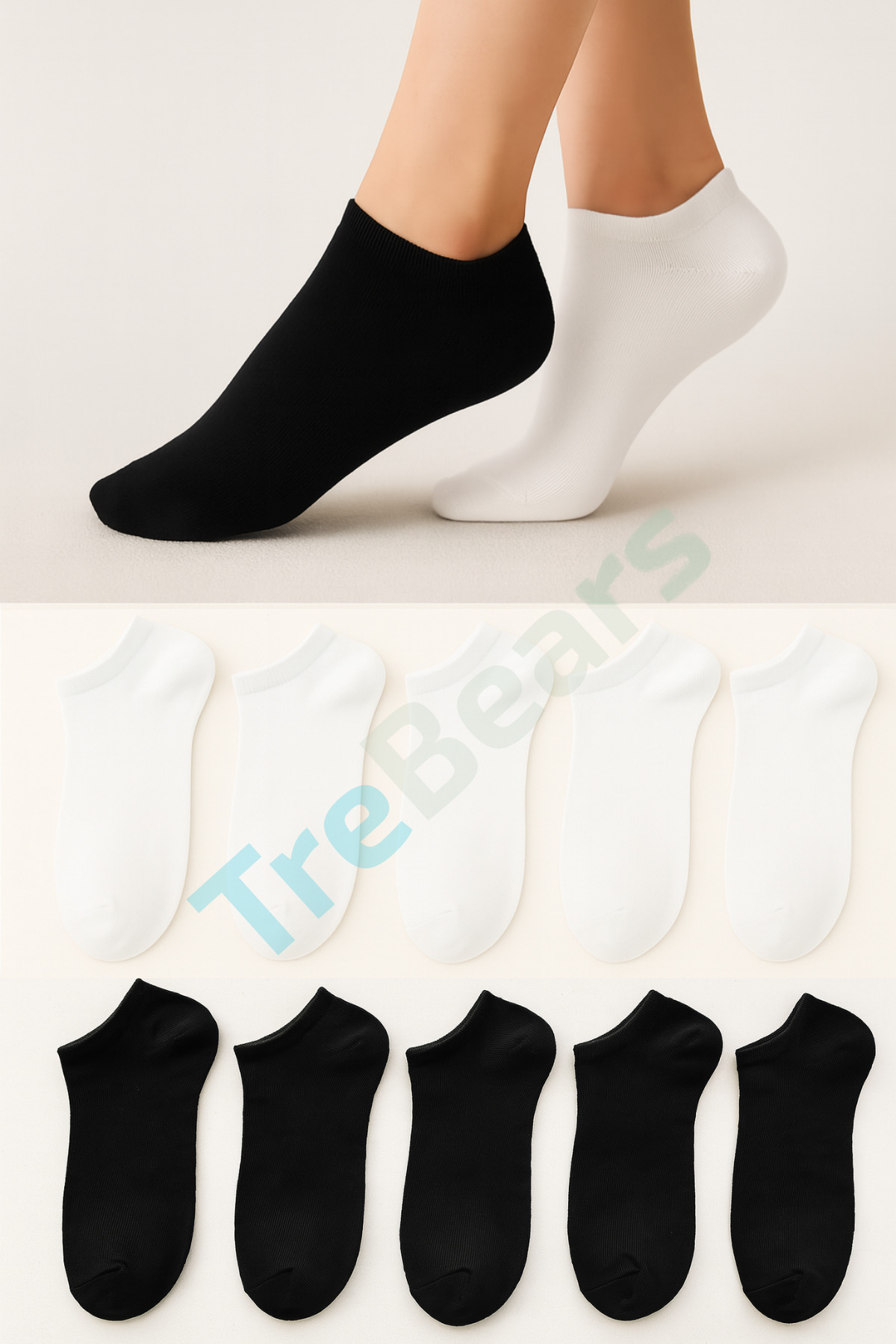 TreBears 10’lu Düz Basic Patik Çorap Seti Günlük Kullanım