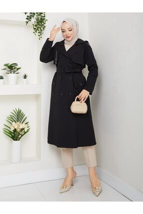 YusGos Kadın Kapüşonlu Astarlı Trençkot Yağmurluk