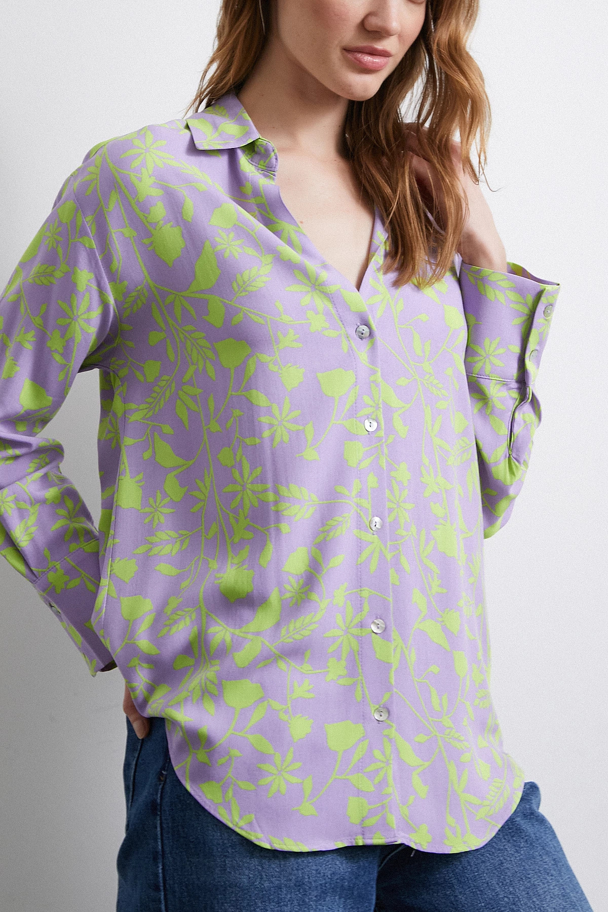 TRENDQUEL Orman Desenli Gömlek Mor Özellikleri