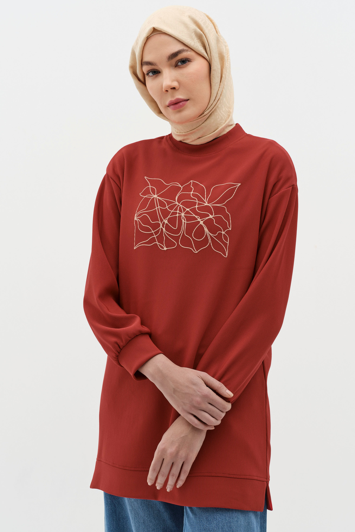Tuğba Desen Baskılı Örme Sweat - Kiremit Özellikleri