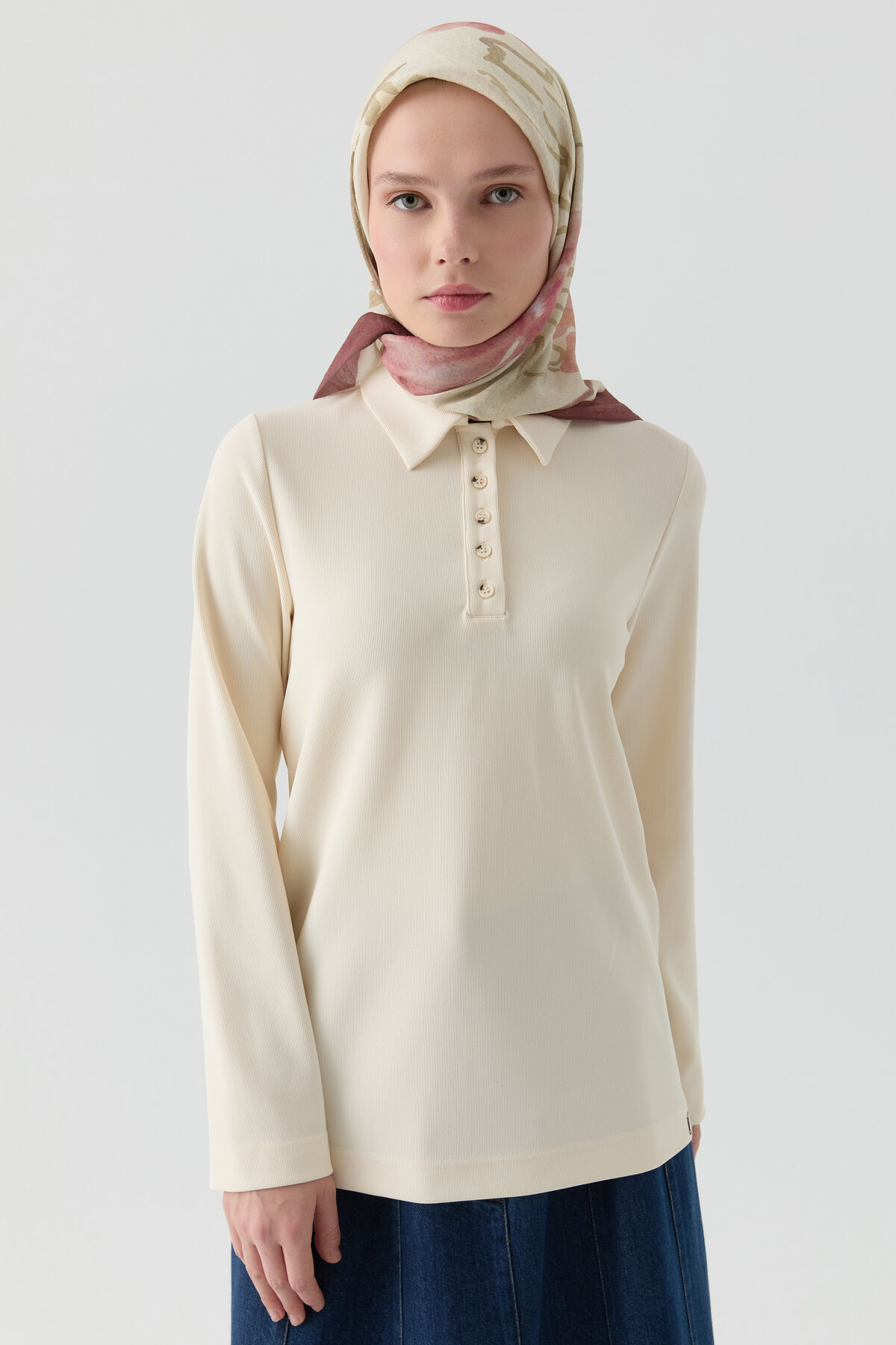 Tuğba Polo Yaka Örme Bluz - Ekru Özellikleri