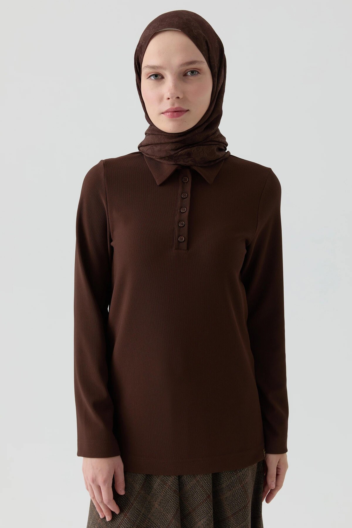 Tuğba Polo Yaka Örme Bluz - Kahve Özellikleri