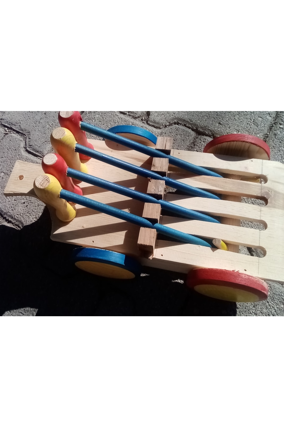 TUGRAİSKİLİP Ahşap Tokmaklı Oyuncak Araba