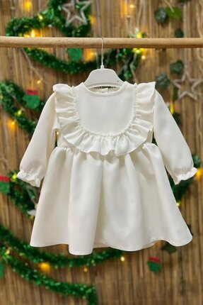 Şenkız Kız Çocuk Tüllü Dantelli Uzun Kollu Bayramlık Prenses Düğün Parti Doğum Günü Elbisesi