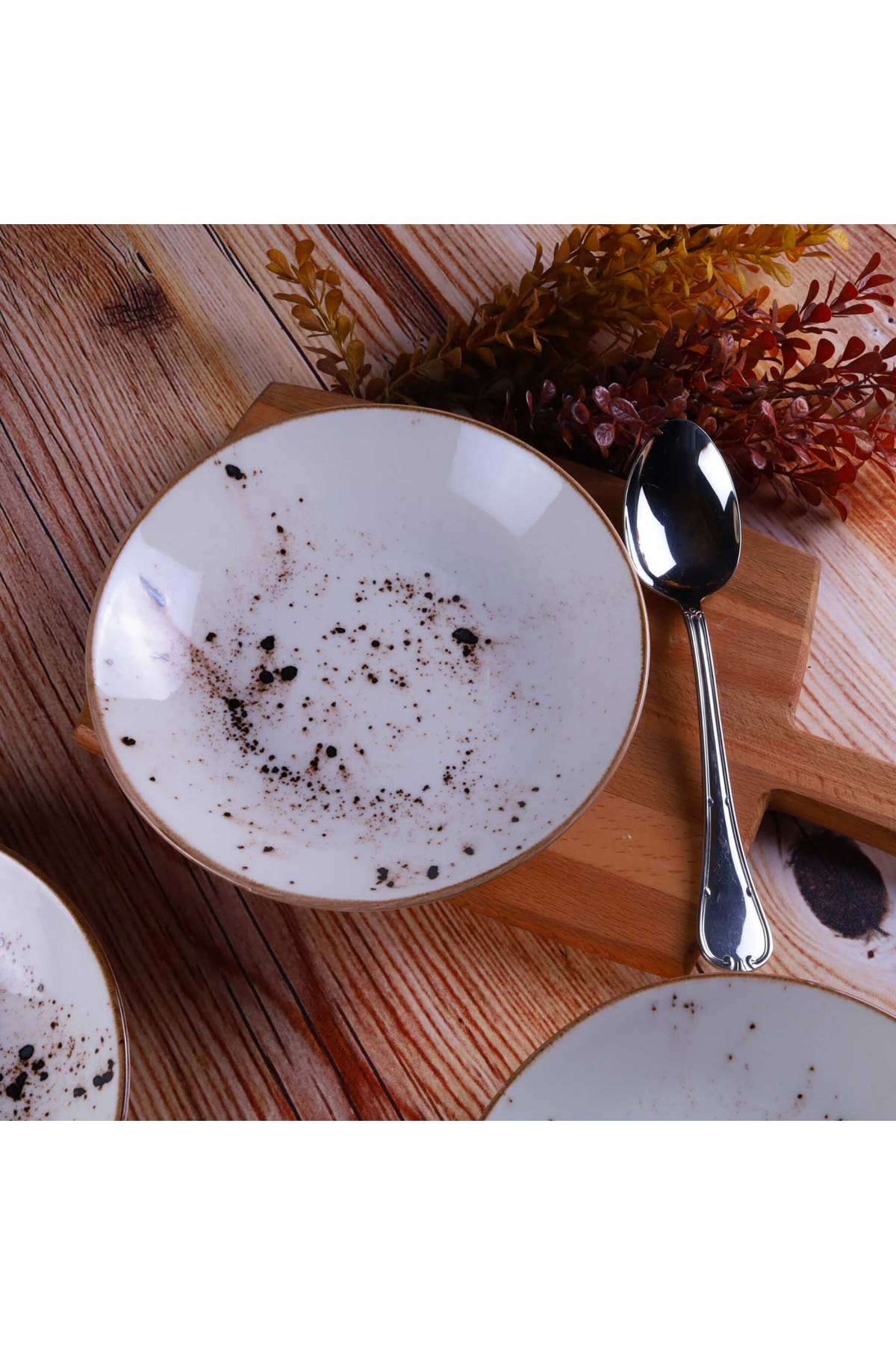 Tulü Porselen Stanbul Collection Reactive 46 Krem 6 Kişililik 6 Adet Çukur Tabak Takımı