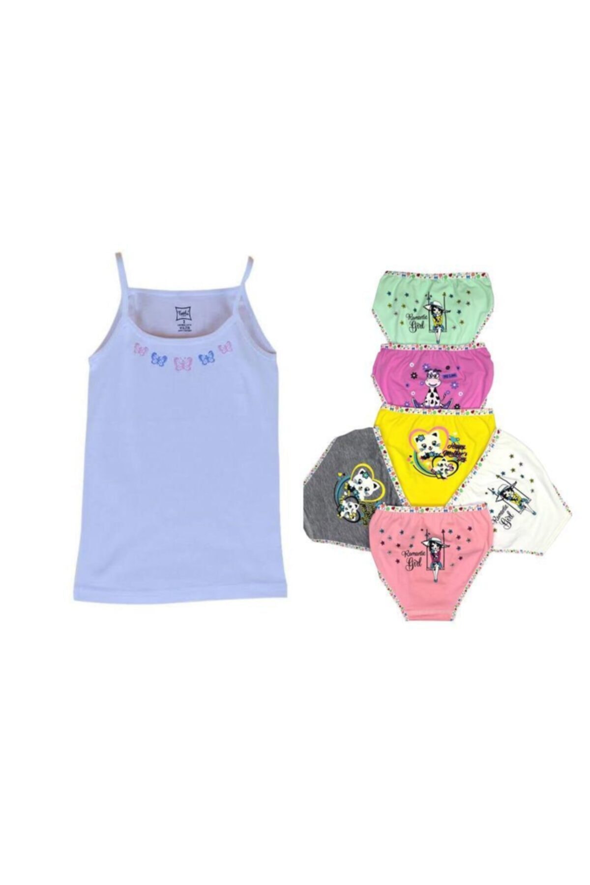 Tutku 4 Adet İp Askılı Atlet 4 Adet Baskılı Slip Kız Çocuk Takımı