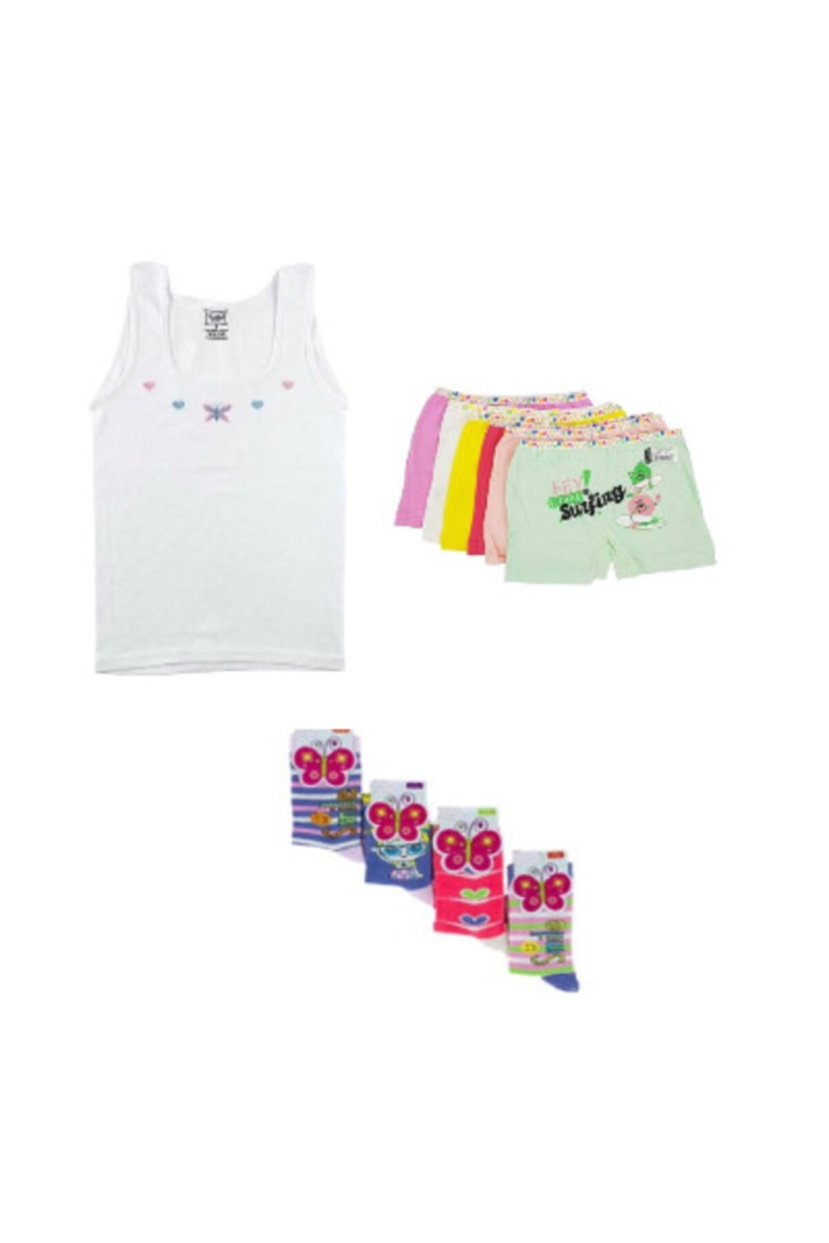 Tutku Kız Cocuk 4 Adet Kalın Askılı Atlet 4 Adet Baskılı Boxer 4 Adet Corap Takımı