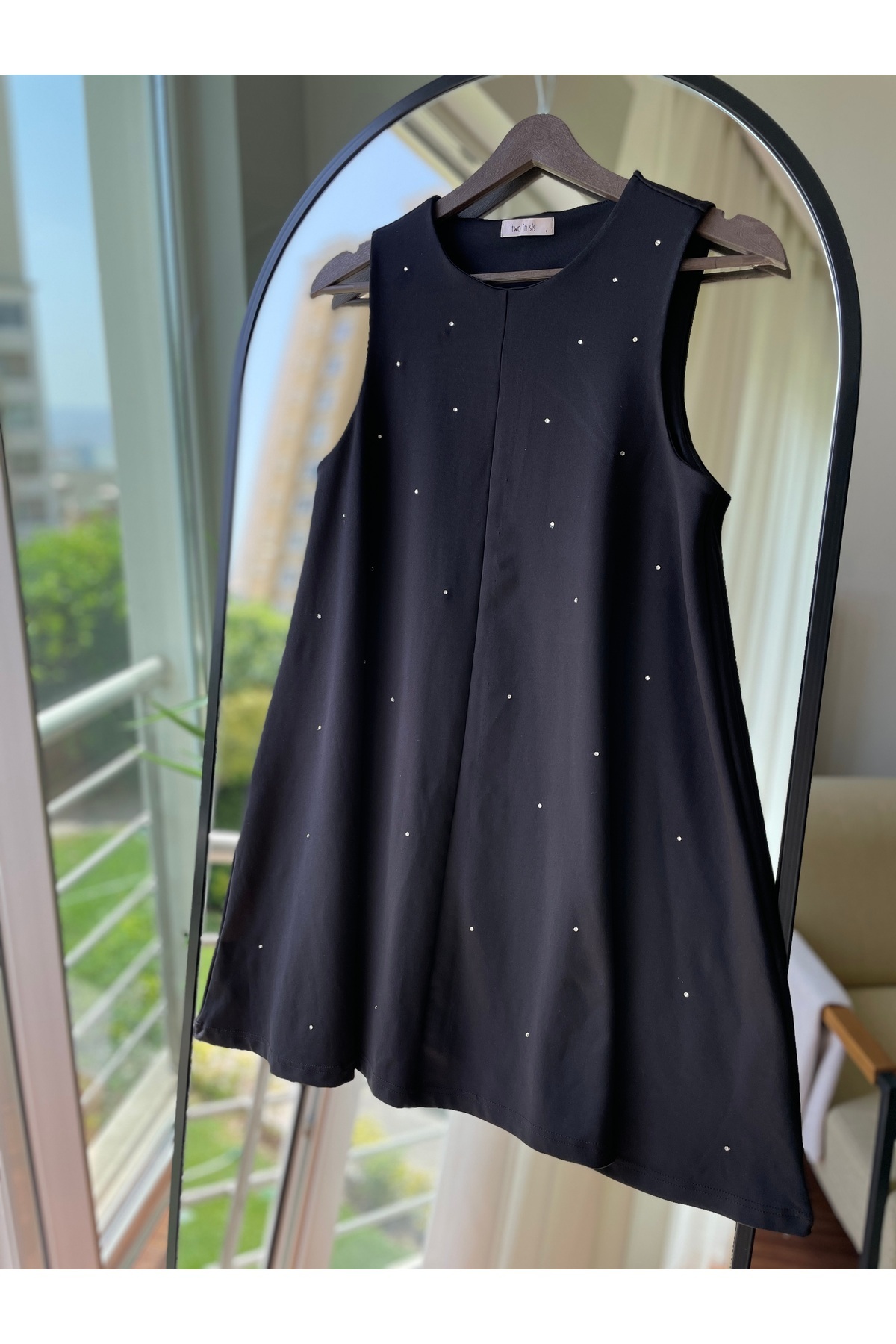 two in sis Taşlı Elbise Dalgıç Çan Elbise Yazlık Çan Elbise Kadın Yazlık Kolsuz Elbise Taş Detaylı Elbise