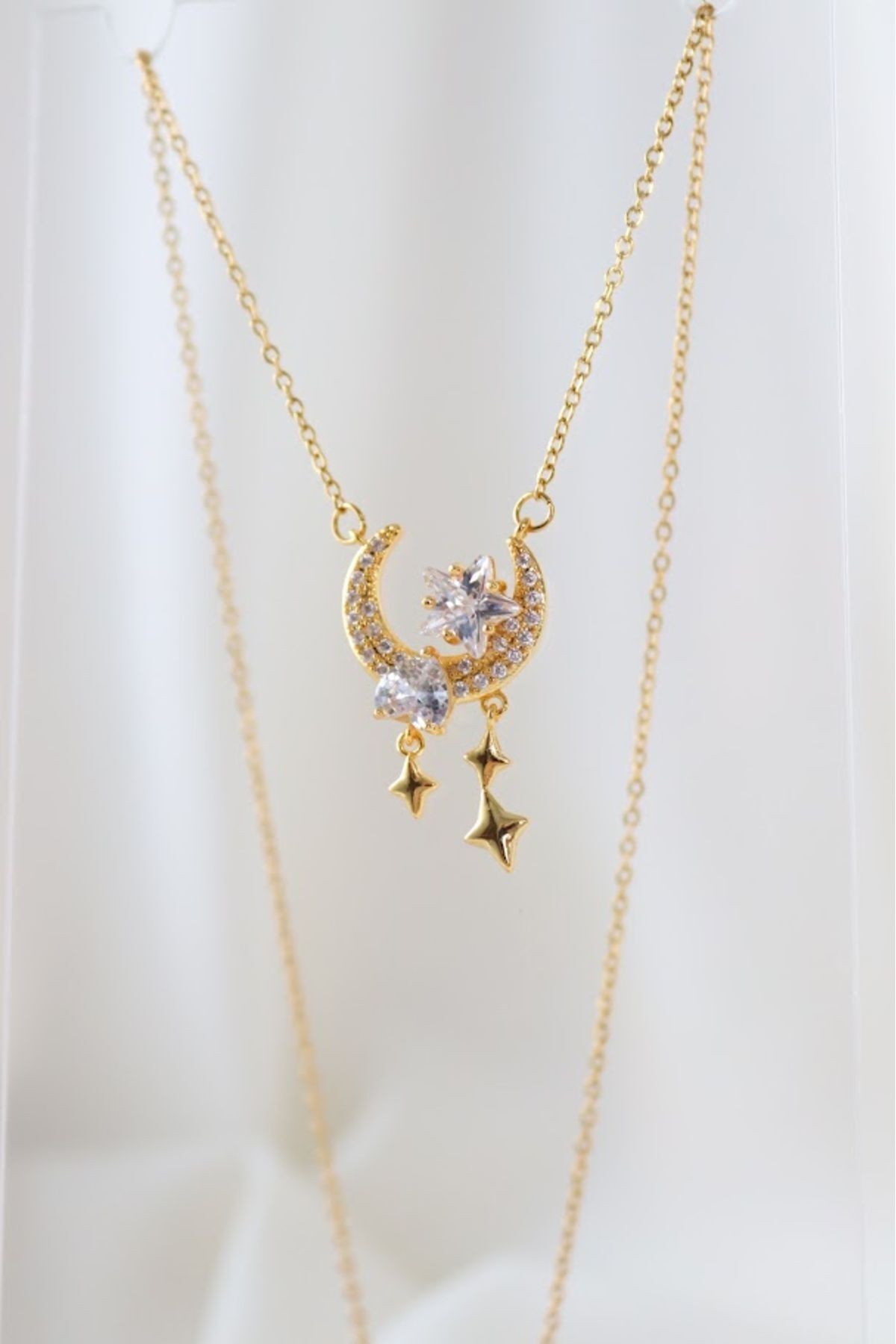 TWO PERLA AY YILDIZ ÇELİK KOLYE