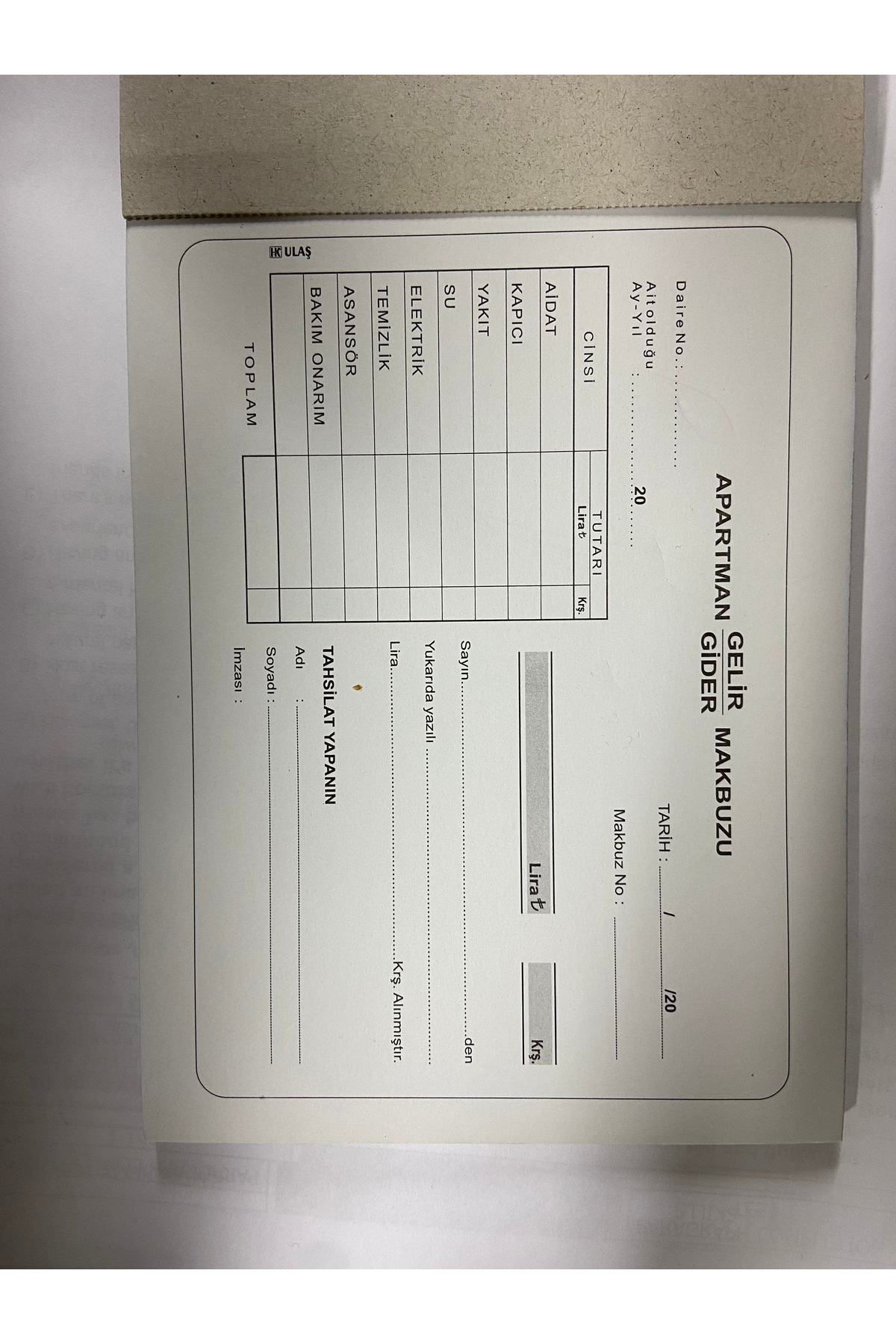 UK Ulaş APARTMAN MAKBUZU