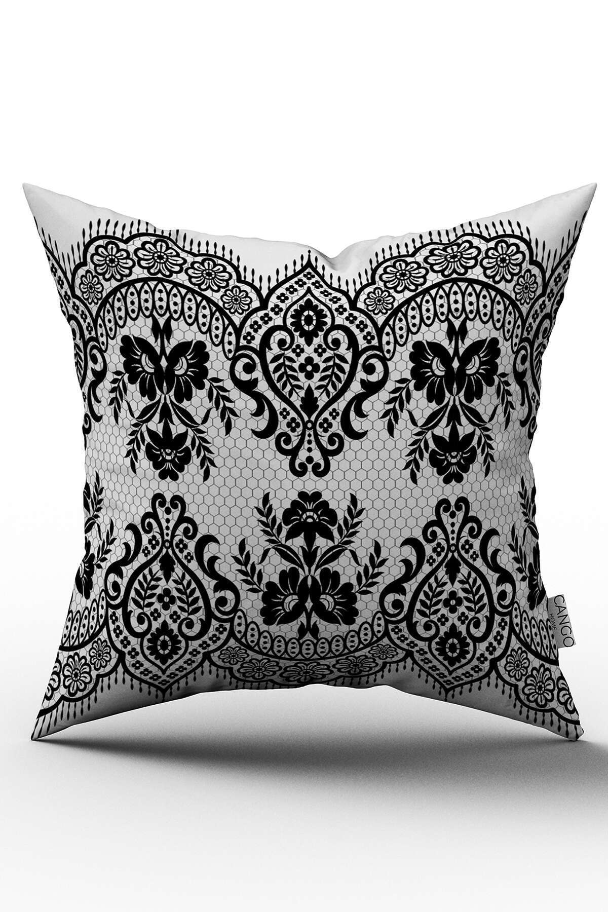 Cango Home Біло-чорна цифрова друкована наволочка з мереживним візерунком - Otyk327
