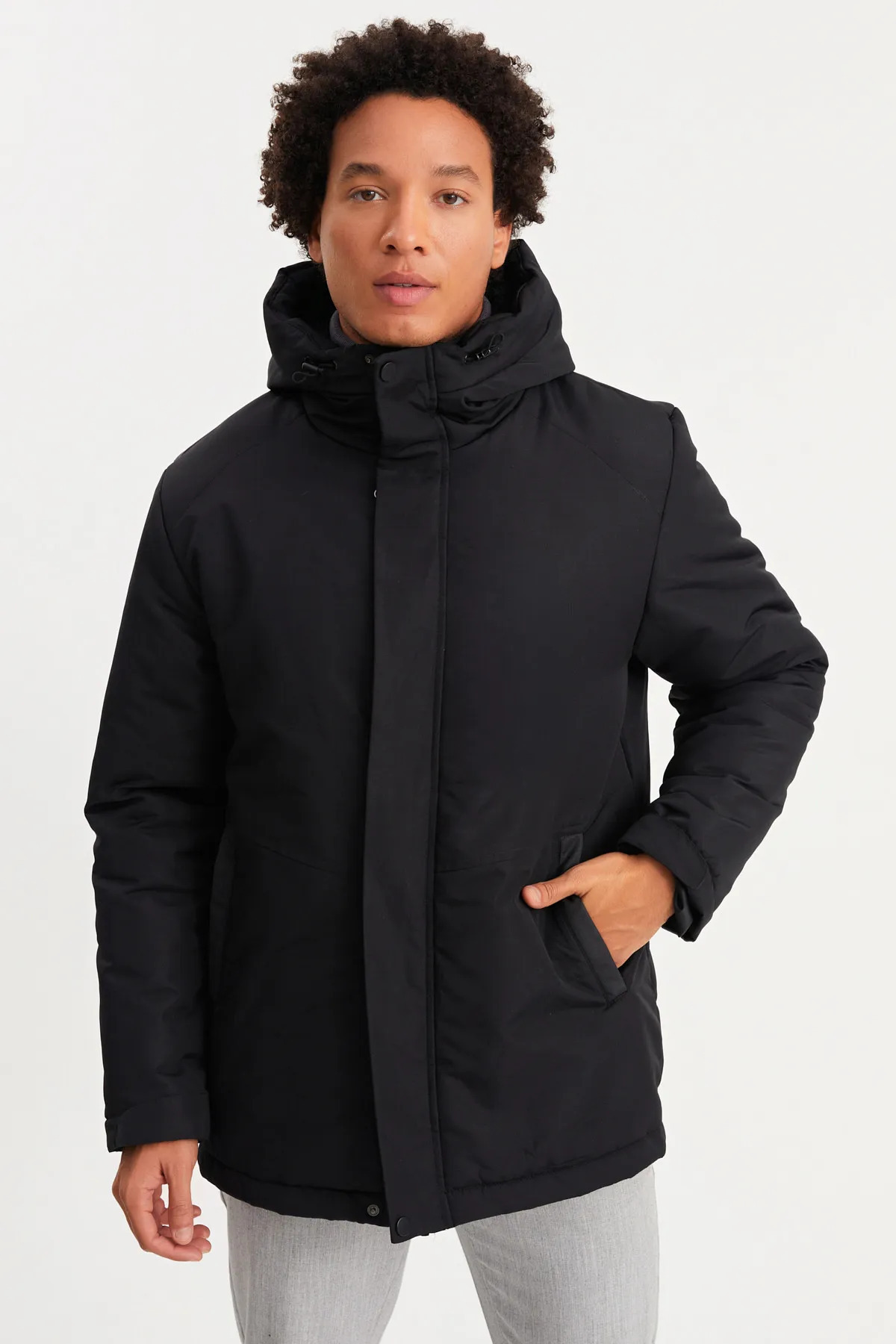 Характеристики D1fference Чоловічий чорний з підкладкою з гелевого волокна, з внутрішніми кишенями, водо- та вітронепроникний, з капюшоном, зимовий парка, пальто та куртка