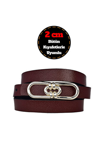 100% натуральна шкіра, сріблястий пряжка, тонкий 2 см бордовий жіночий пояс для сукні, штанів; довгий ланцюг.