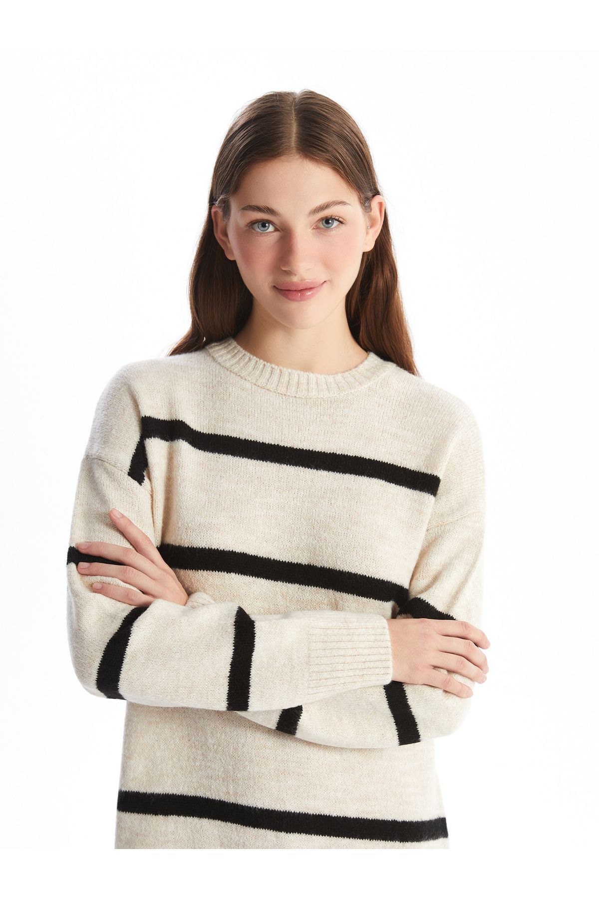 LC Waikiki Смугаста жіноча трикотажна сукня з вирізом горловини