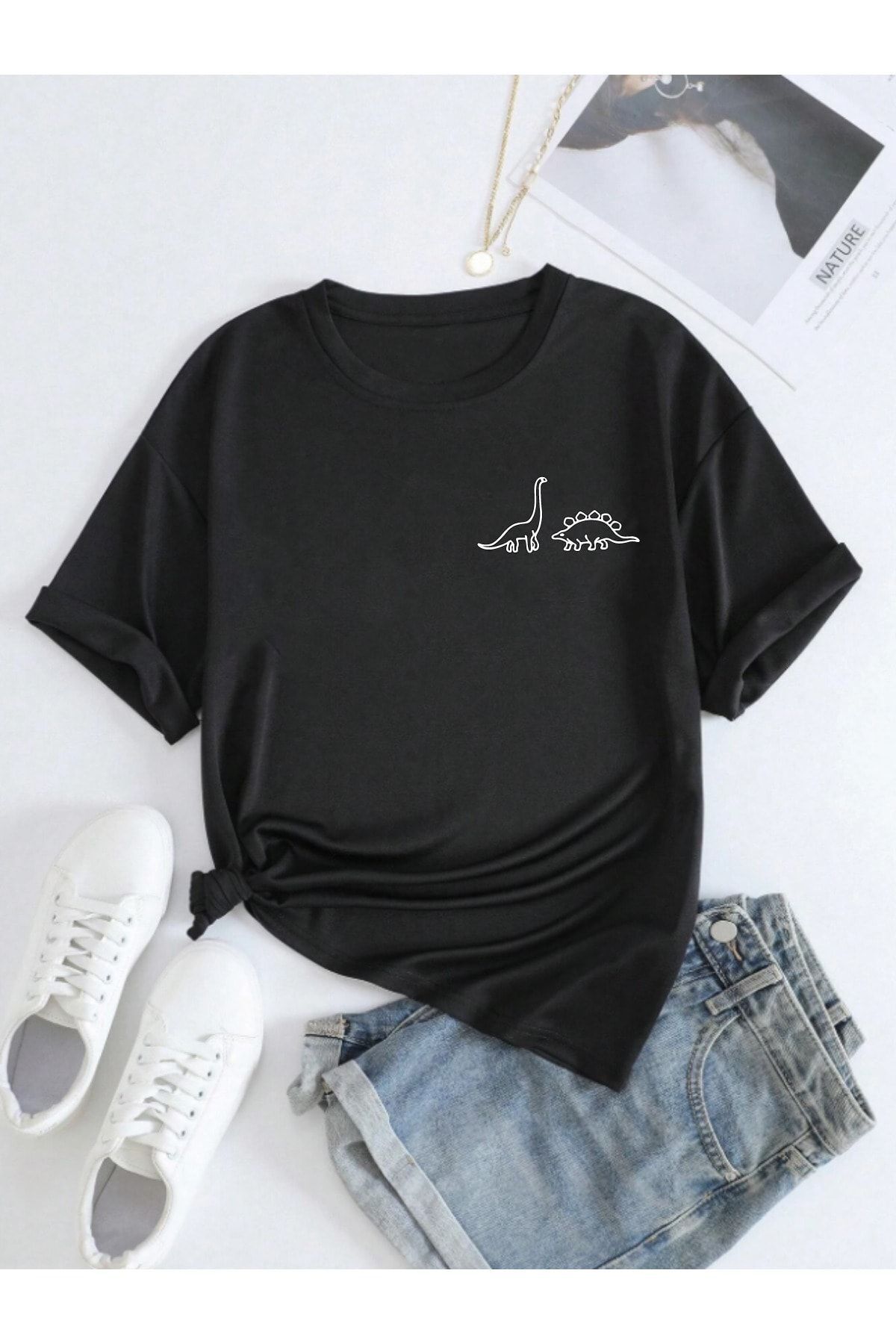 VASK Унісекс СИМПАТИЧНИЙ ДИНОЗАВР З принтом Oversize Tshırt
