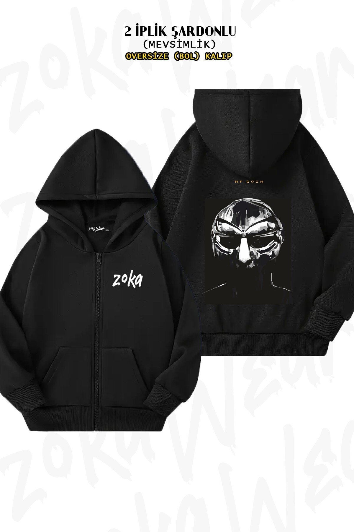 ZOKAWEAR Унісекс Mf Doom v3 з принтом Oversize з принтом на спині, на блискавці, з капюшоном