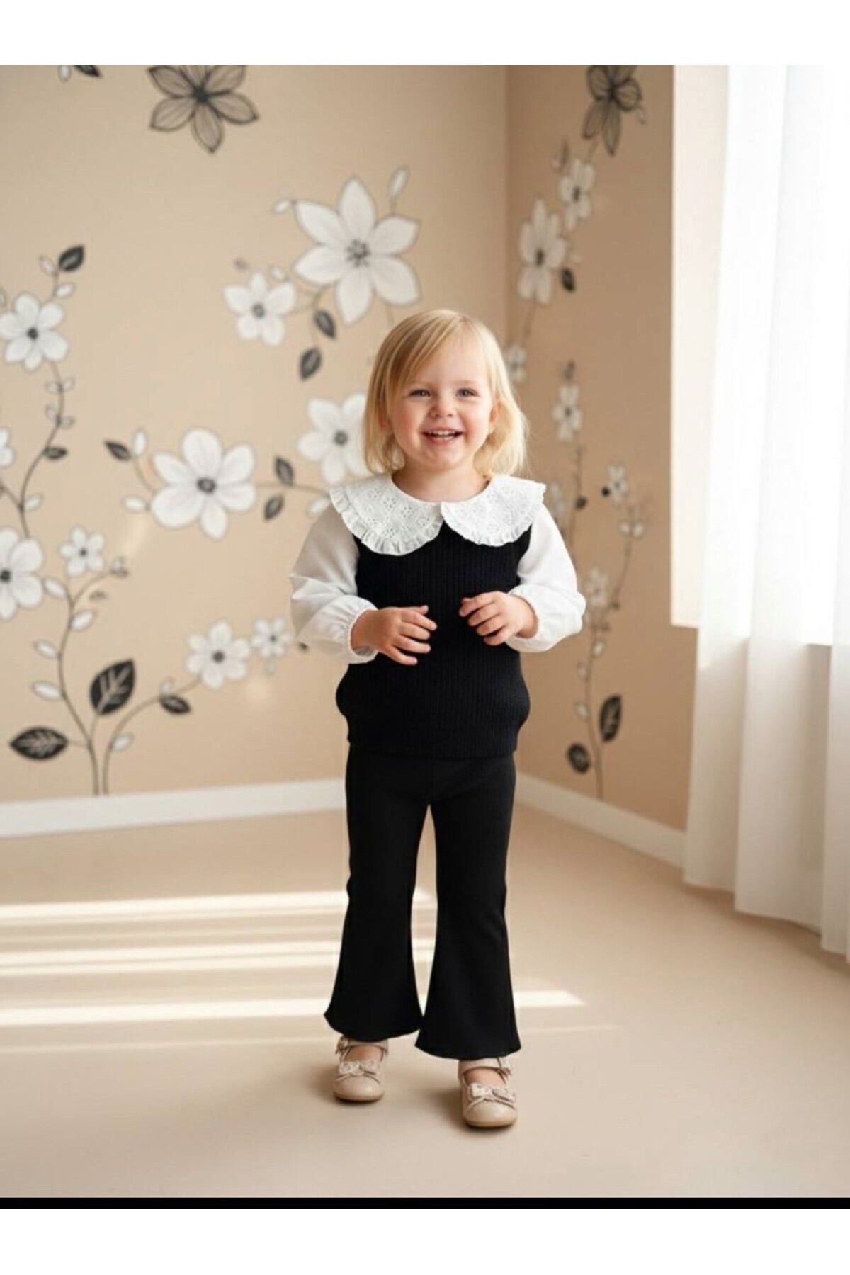 bebek yaka triko kolları gömlek model şık bir takım