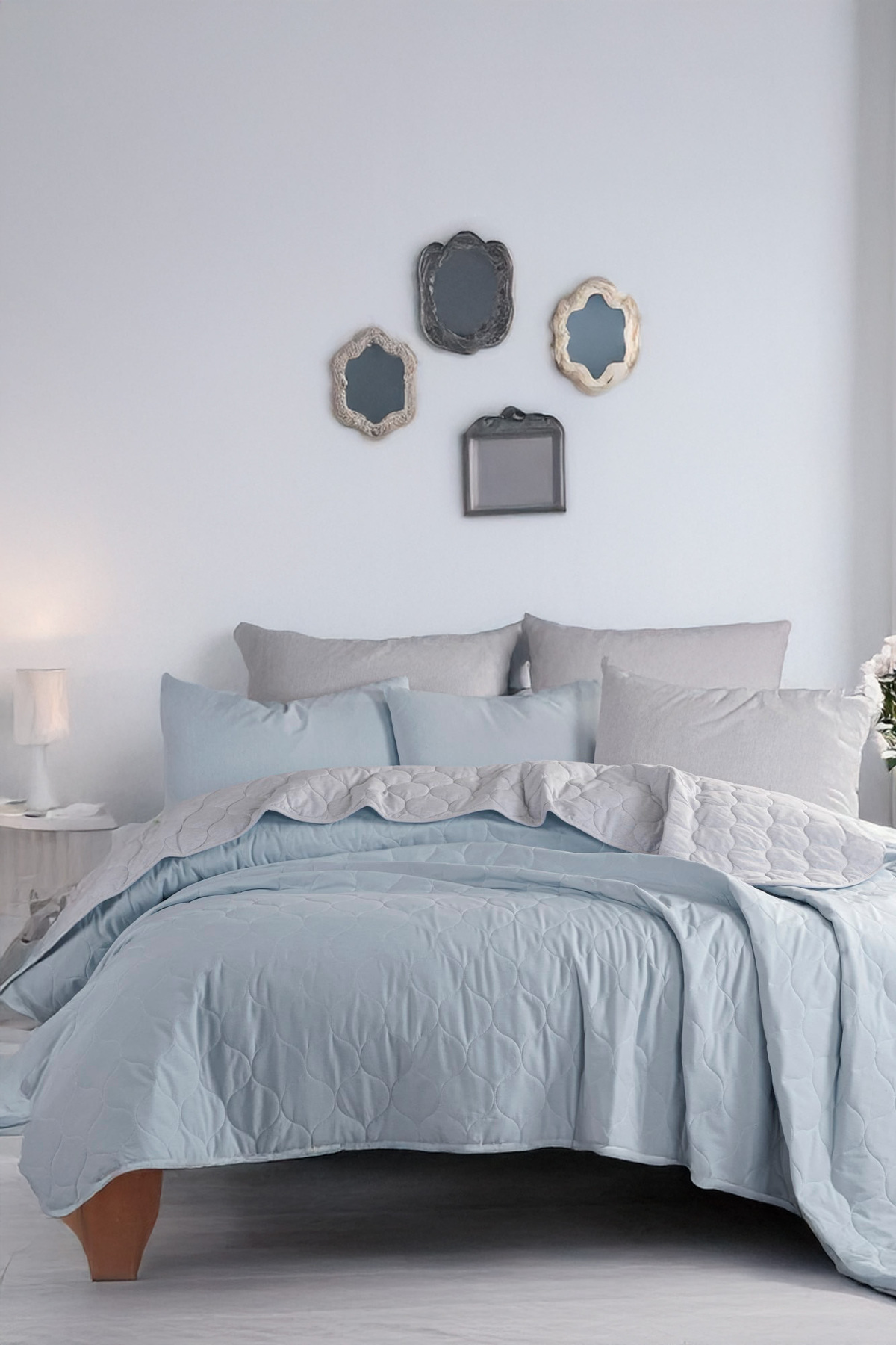 UPSTYLE Kapitone Yatak Örtüsü Seti Çift Kişilik Solid A.Mavi-Gri Özellikleri