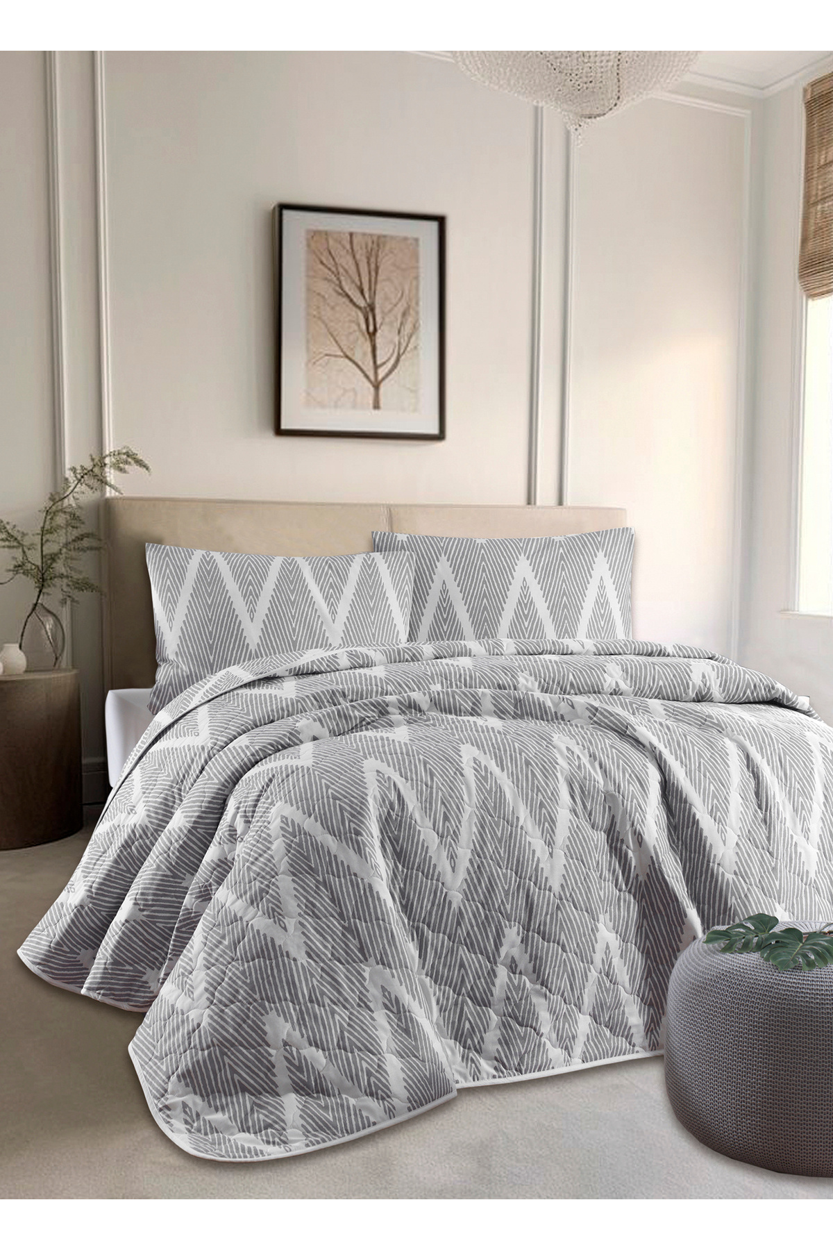UPSTYLE Kapitone Yatak Örtüsü Seti Tek Kişilik Olivia Gri