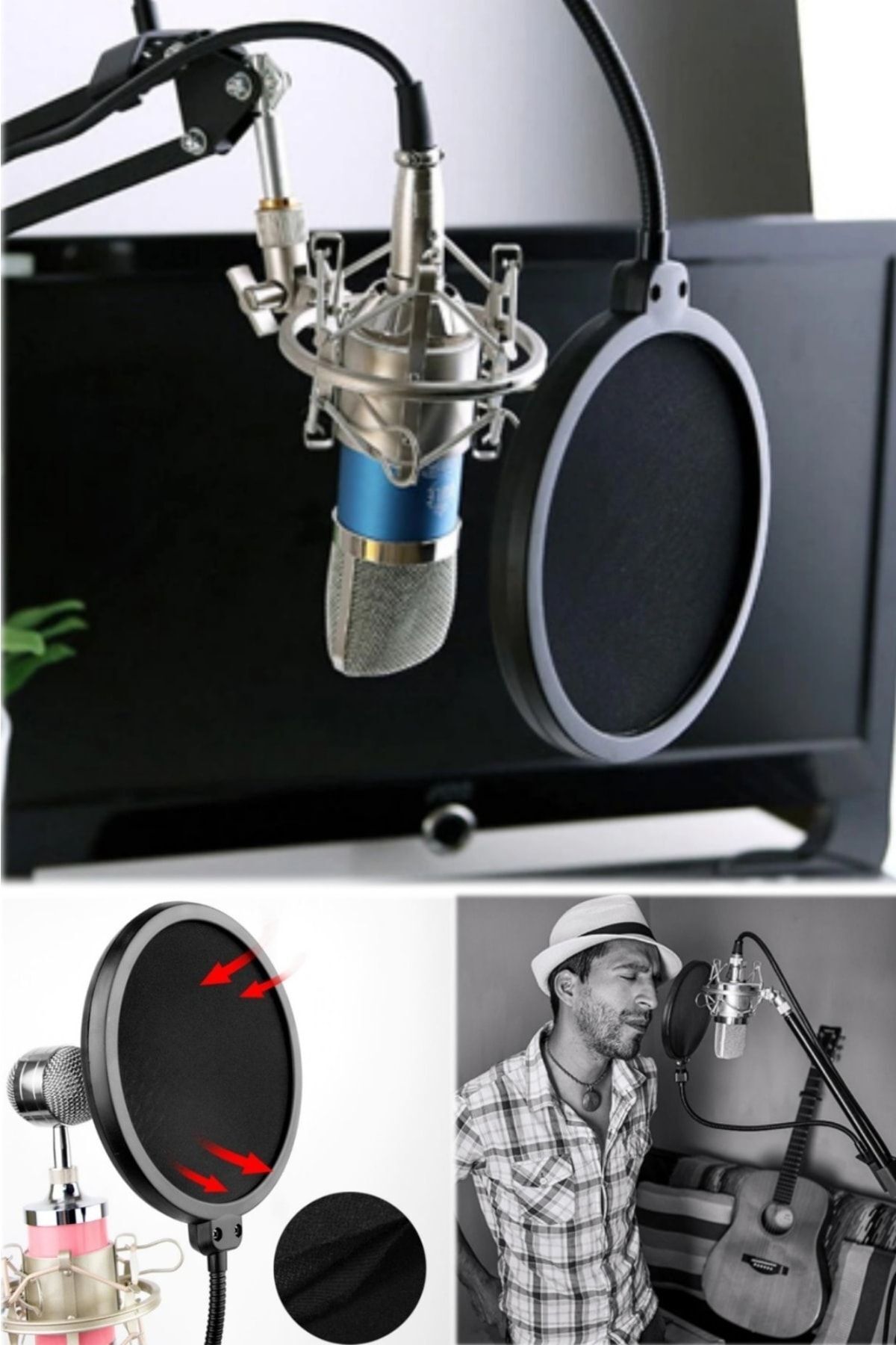 Utelips Kayıt Büyük Kalibreli Patlama Önleme Net Ses Geçirmez Kapak, Mikrofon Gürültüsünü Filtreleme Aleti