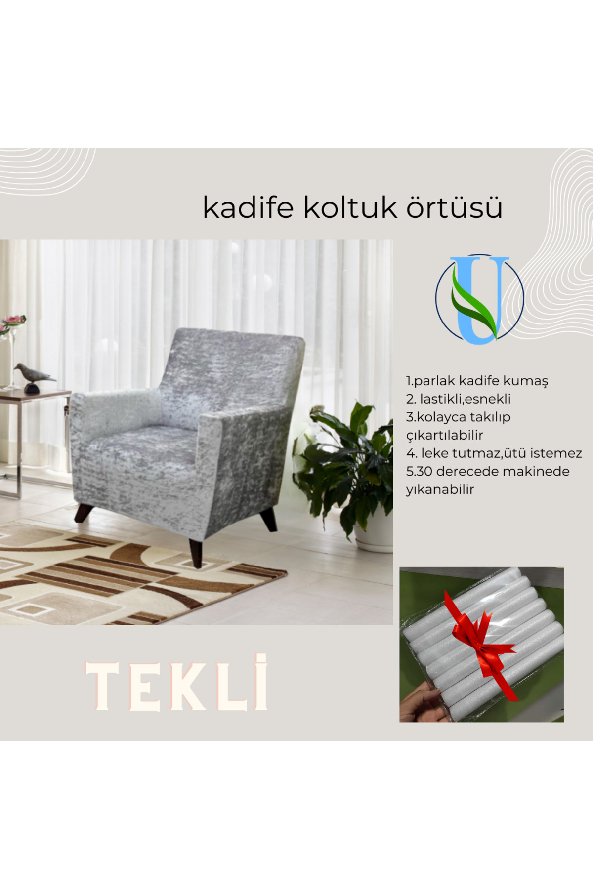 Uy Style Tekstil Kadife tek kişilik koltuk örtüsü,berjer kılıfı lastikli Özellikleri