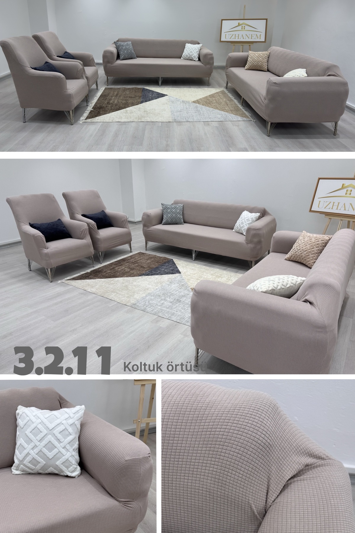 uzhanem Likrali Koltuk Örtüsü 3+2+1+1 . Koltuk Kılıfı Lastikli Esnek Yikanabilir Kare Desen Berjer Antrasit Özellikleri