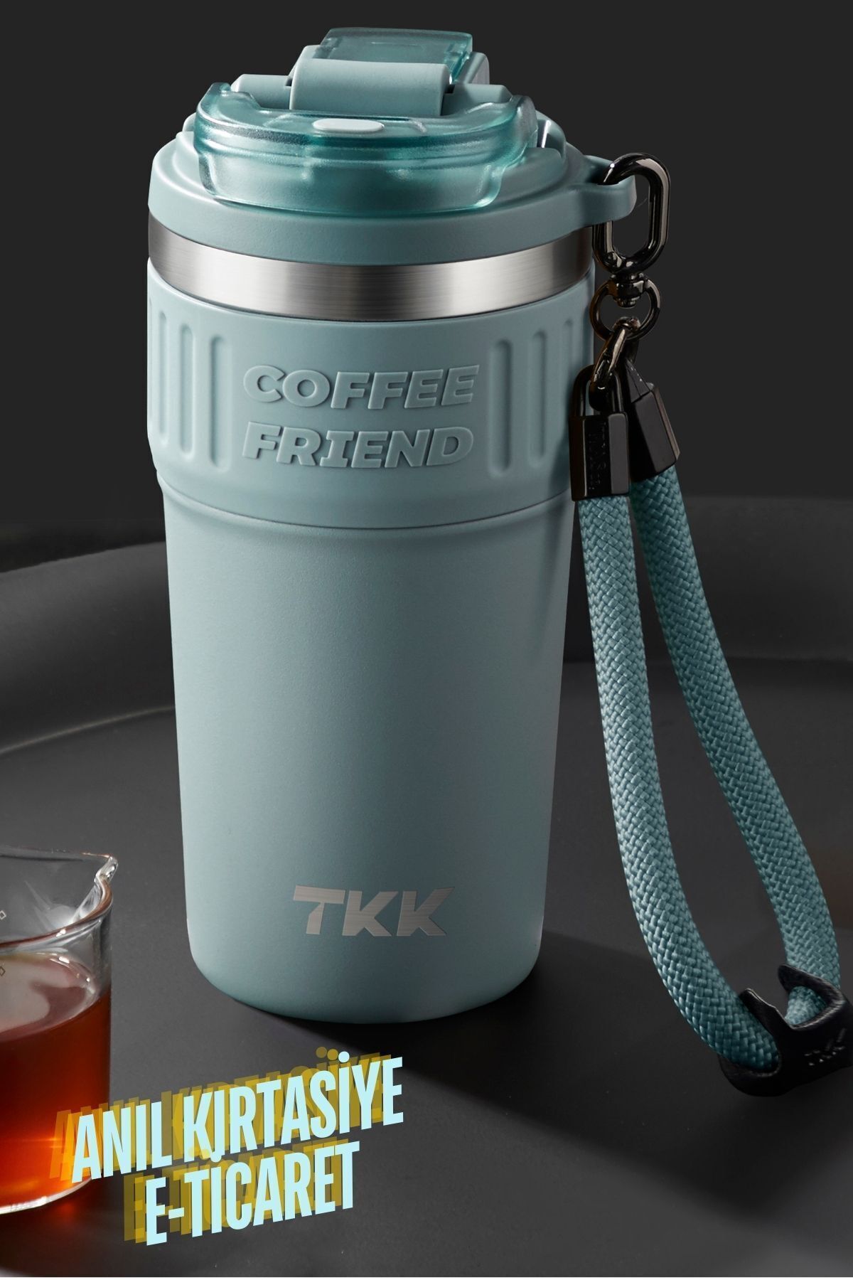 Vagonlife TKK Yeni Koleksiyon 630ml Pipetli/Pipetsiz Kullanım Askılı Paslanmaz Çelik Termos Kahve Mug Matara
